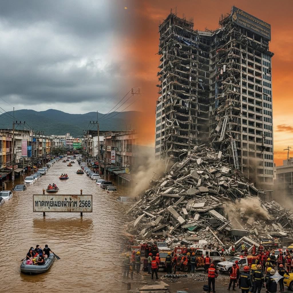 1⃣ภัยธรรมชาติ: เหตุอาคารถล่มจากแผ่นดินไหว และมหาอุทกภัยภาคใต้