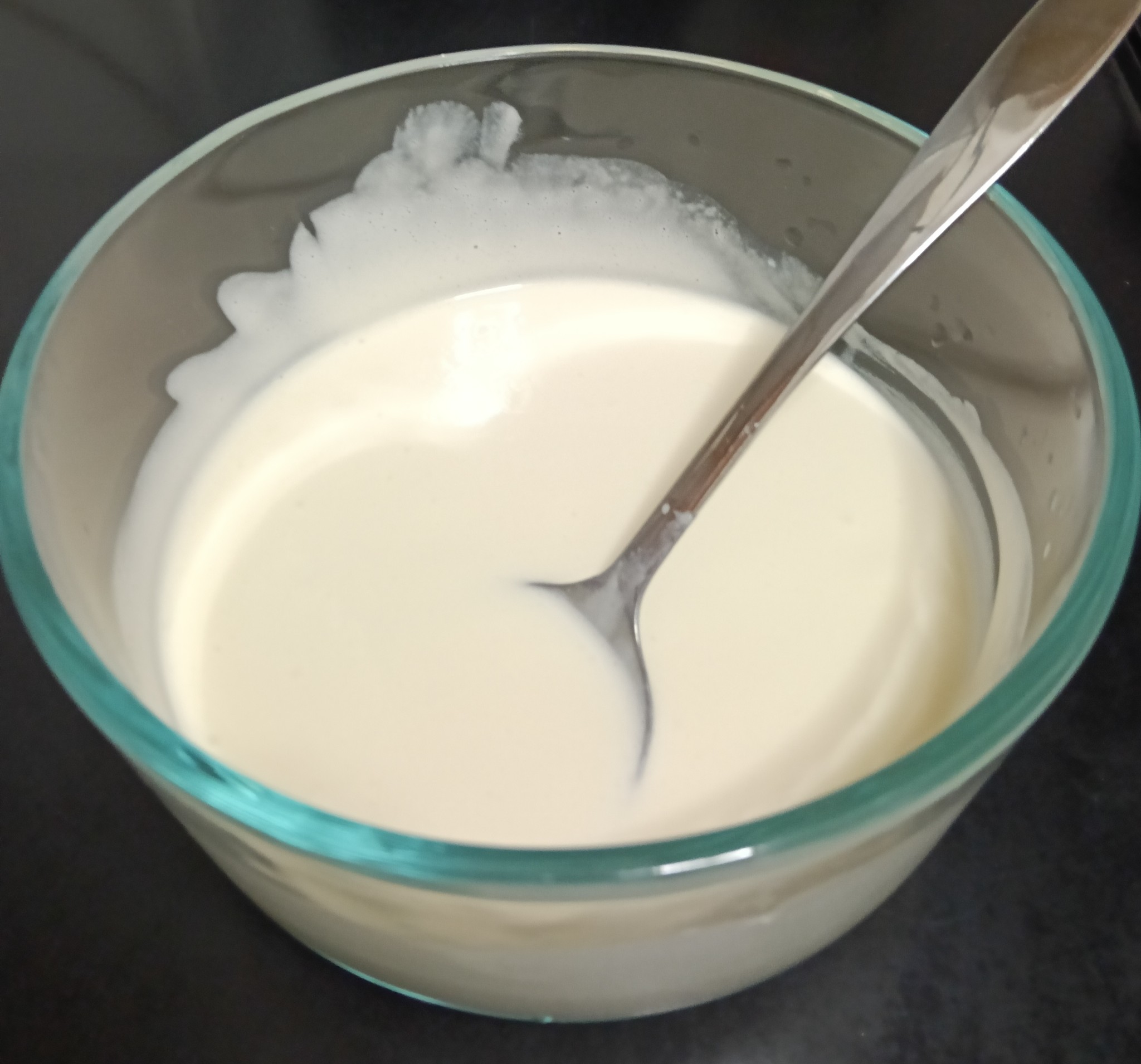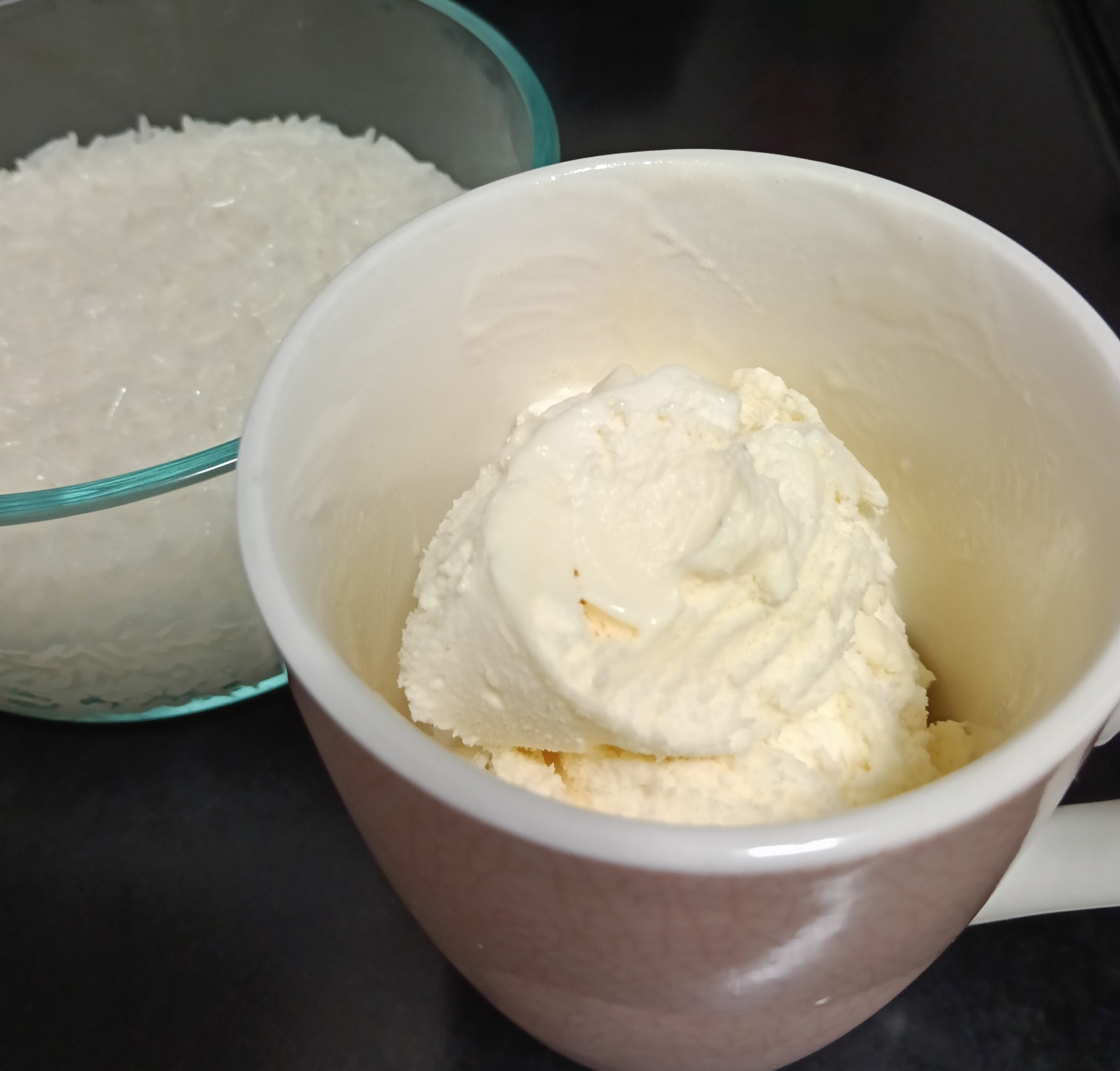 จากนั้นก็ละลายไอศครีม จขกท ไว้ไอศครีมรสวานิลลา เนื่องจากหาไอศครีมรสมะพร้าวไม่ได้ หรือใครชอบไอศครีมรสไหนก็เปลี่ยนได้ตามชอบเลยนะคะ