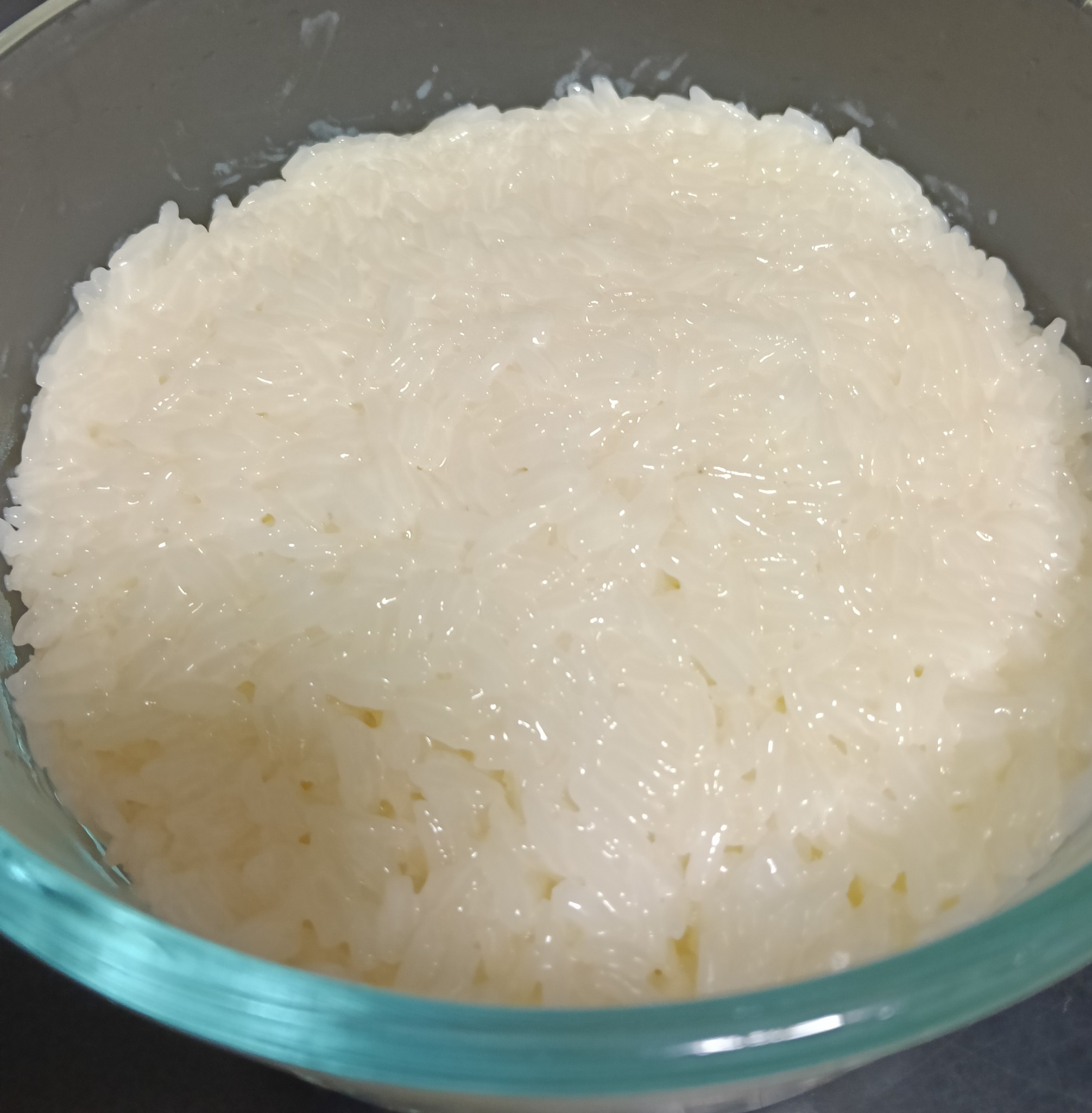 - นึ่งข้าวเหนียวด้วยไมโครเวฟเหมือนเดิม เติมน้ำเล็กน้อยพอปริ่มๆ ปิดฝา เอาเข้าไมโครเวฟ 5 นาที