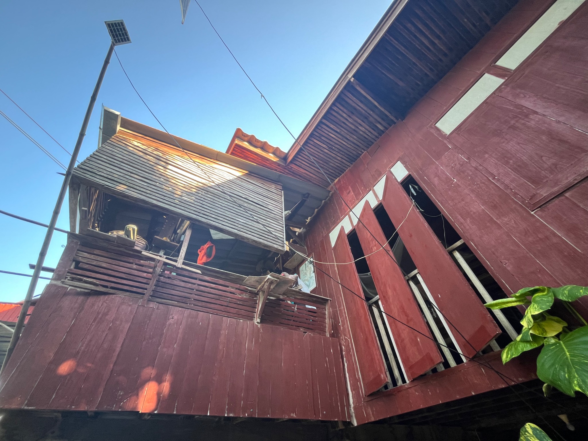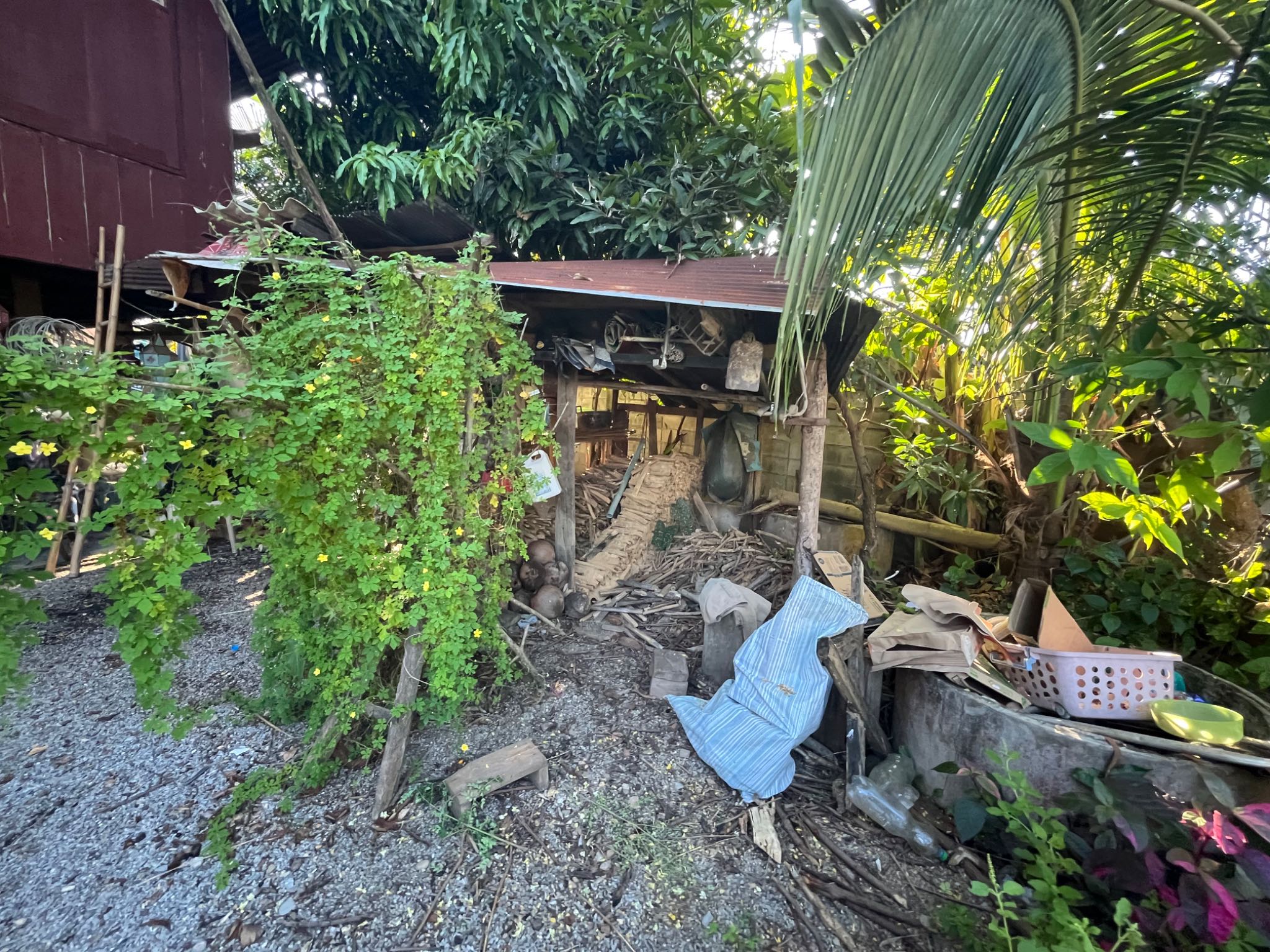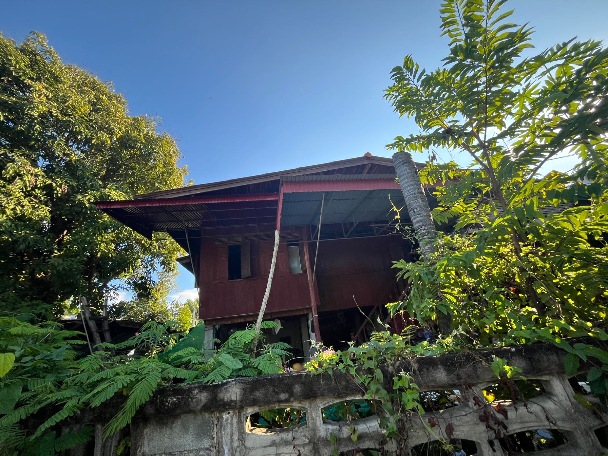 ท่ามกลางต้นไม้หนาทึบ แสงแดดร้อนจัด บ้านสีแดงเก่าของตาใจ๋ก็ยังคงตั้งอยู่อย่างถาวร