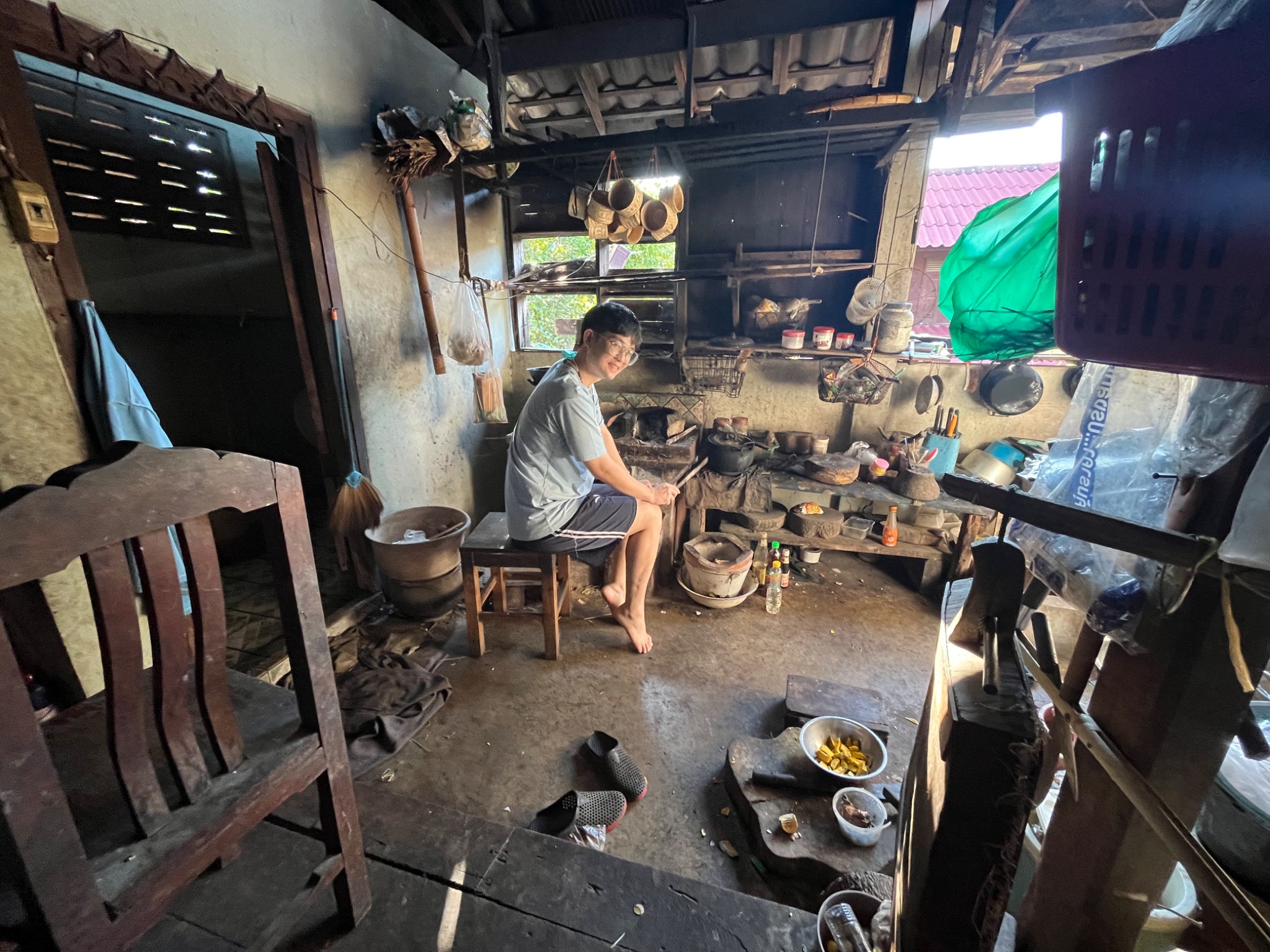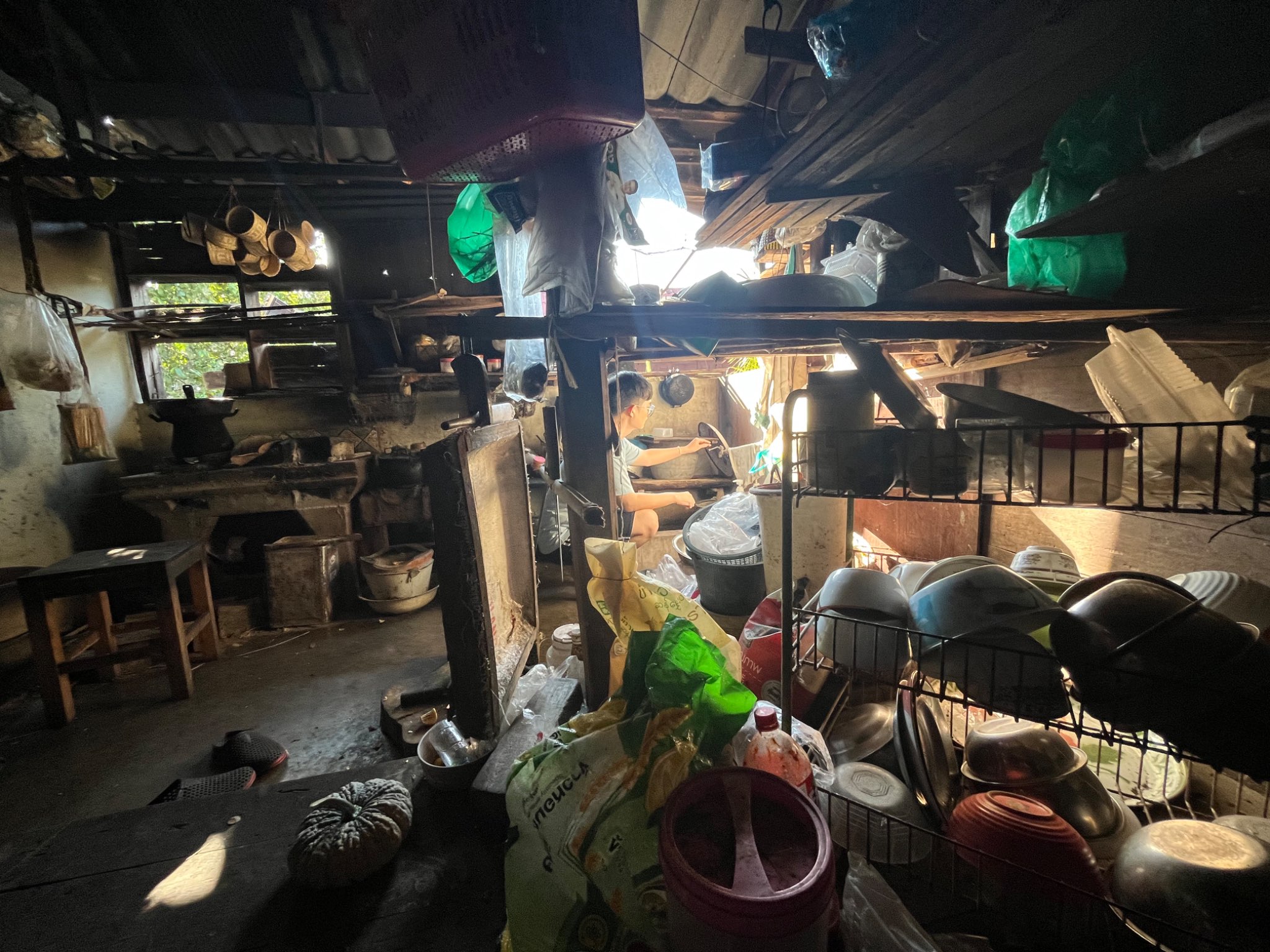 เราเริ่มจากห้องครัวไฟเพราะฉันหิวข้าว ไปดูหน่อยว่าวันนี้แม่หลวงพรทำอะไรกิน
