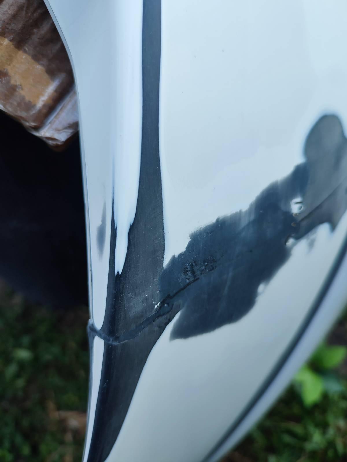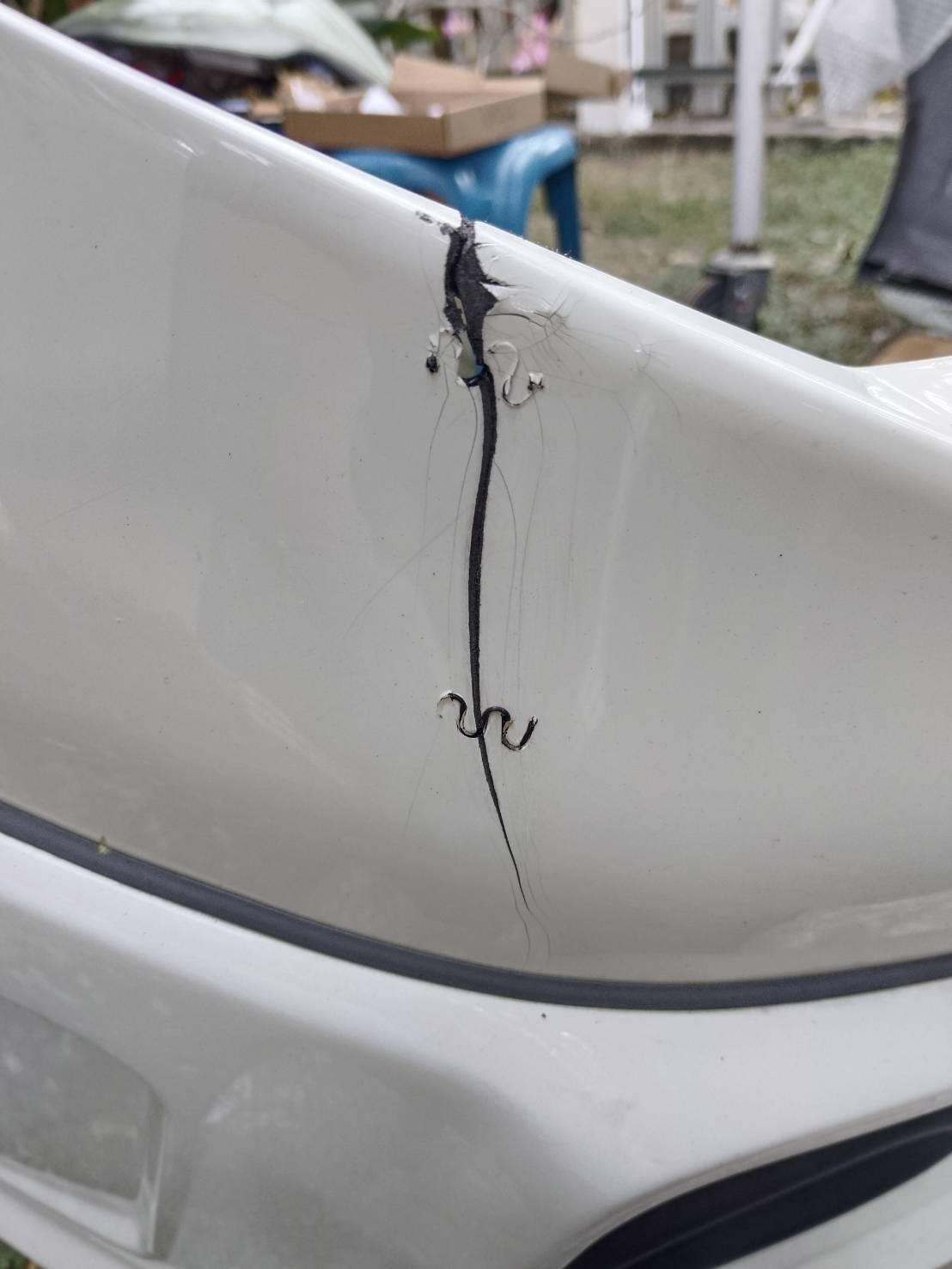 เริ่มซ่อมกันชน เย็บด้วยปืนลวดความร้อน มือใหม่ ก็แช่นานจนทะลุโบ๋ครับ