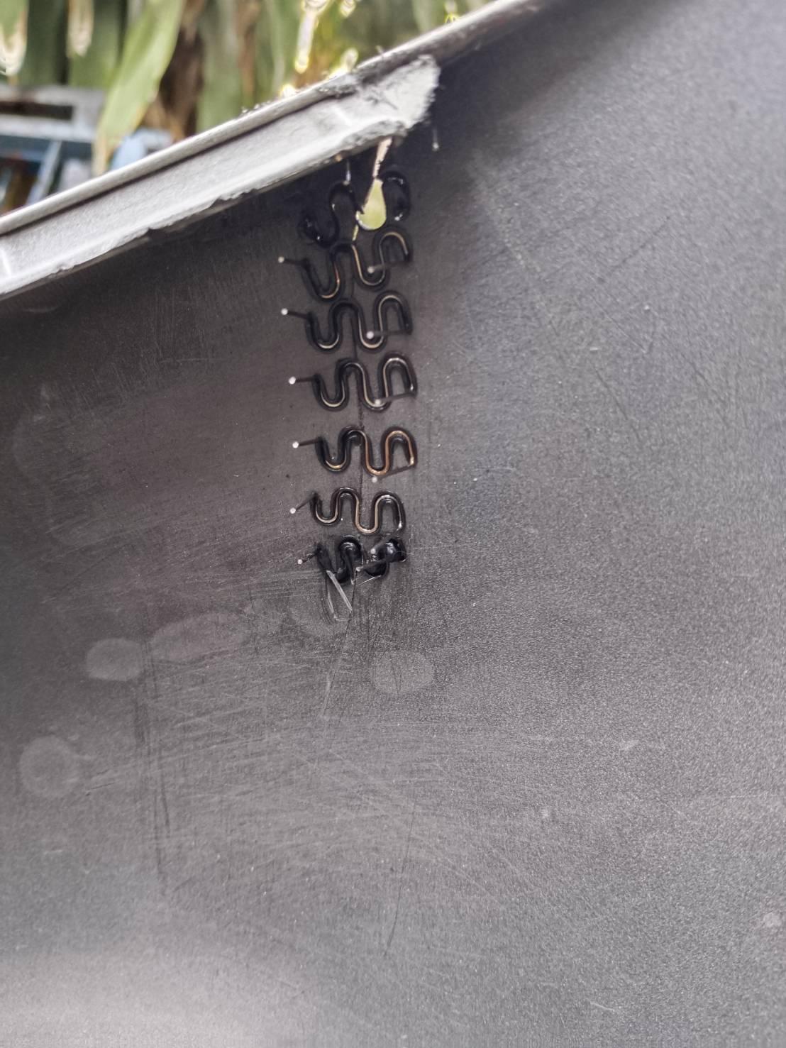 ทาพลาสติกดำๆ ละลายปิดลวดด้านใน แล้วใช้กระดาษทรายขัดด้านนอก ให้ลวดมัดเรียบ