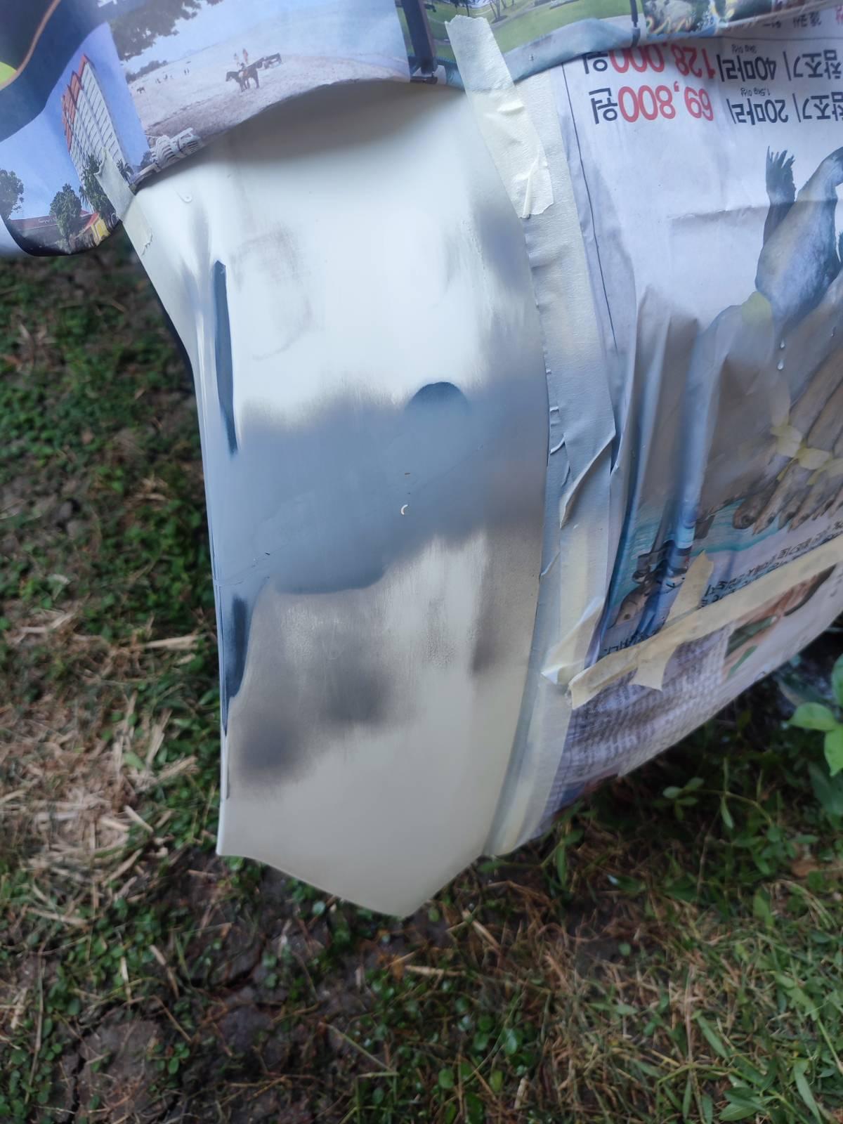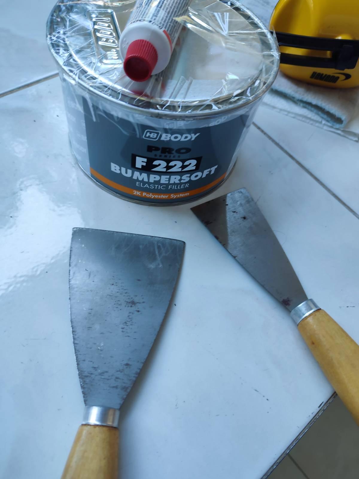 โป๊วสีสำหรับกันชนพลาสติก ทำครั้งแรก ยากนิดนึงครับ แล้วขัดกระดาษทรายน้ำ 220 และ 320