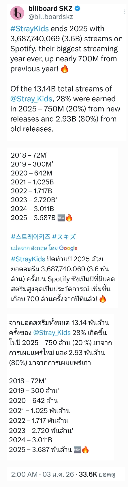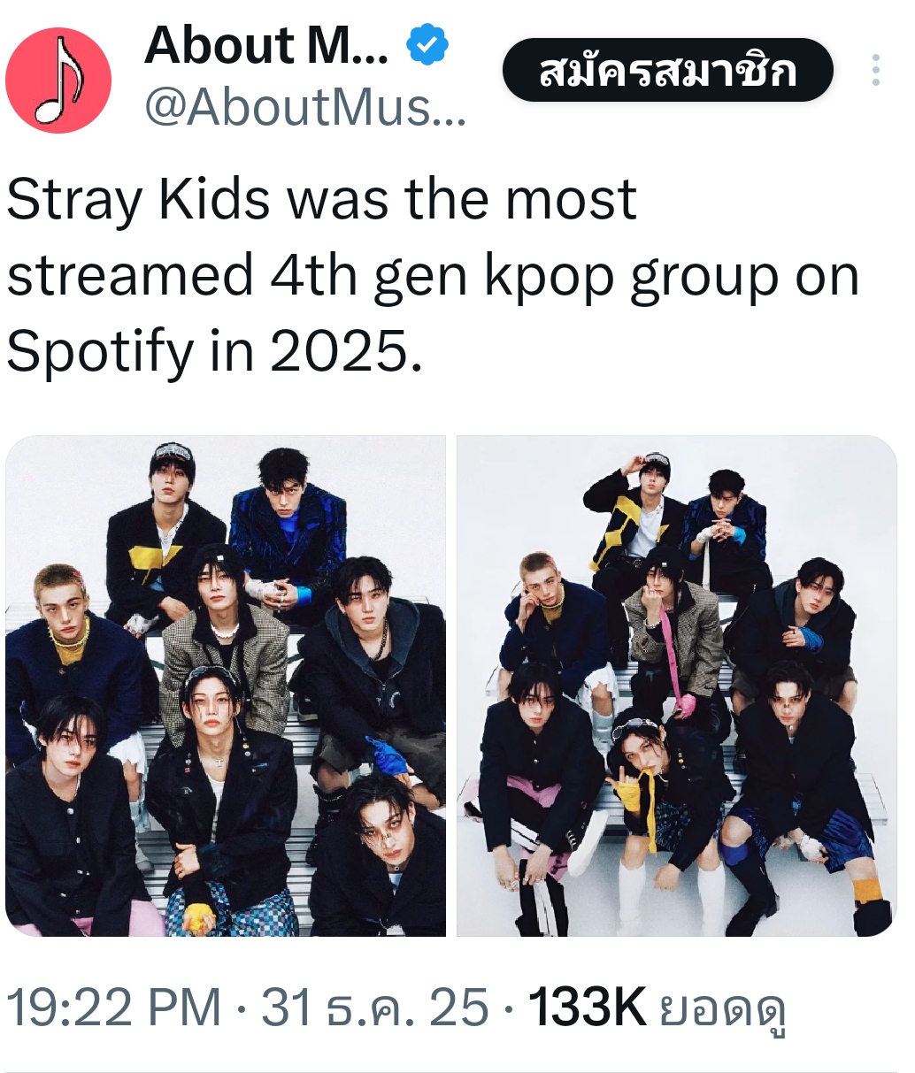 🔥 Stray Kids K-Pop อันดับ1 เจน4 มียอดสตรีมอันดับ 1 ทั้ง12 เดือน เจน4 วงเดียวที่ทำได้ยอดสตรีมทะลุ 3.68 พันล้านครั้ง บน Spotify ในปี2025