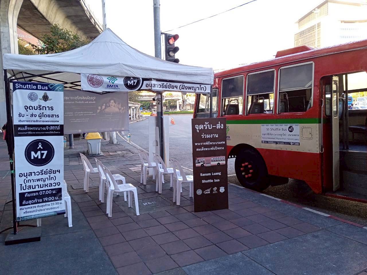 สนามหลวง ตรงข้ามศาลฎีกา จุดพักคอย รถฟรี shuttle bus ขสมก. มีประมาณ 10 กว่าสาย เช่น หมอชิต สถานีกลางบางซื่อ อนุสาวรีย์ชัยสมรภูมิ เป็นต้น