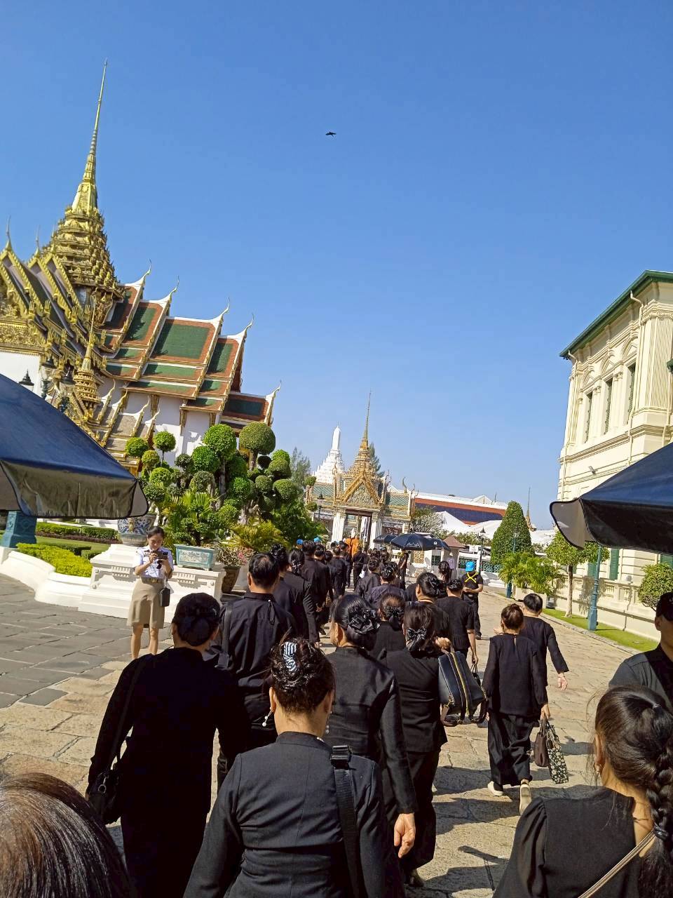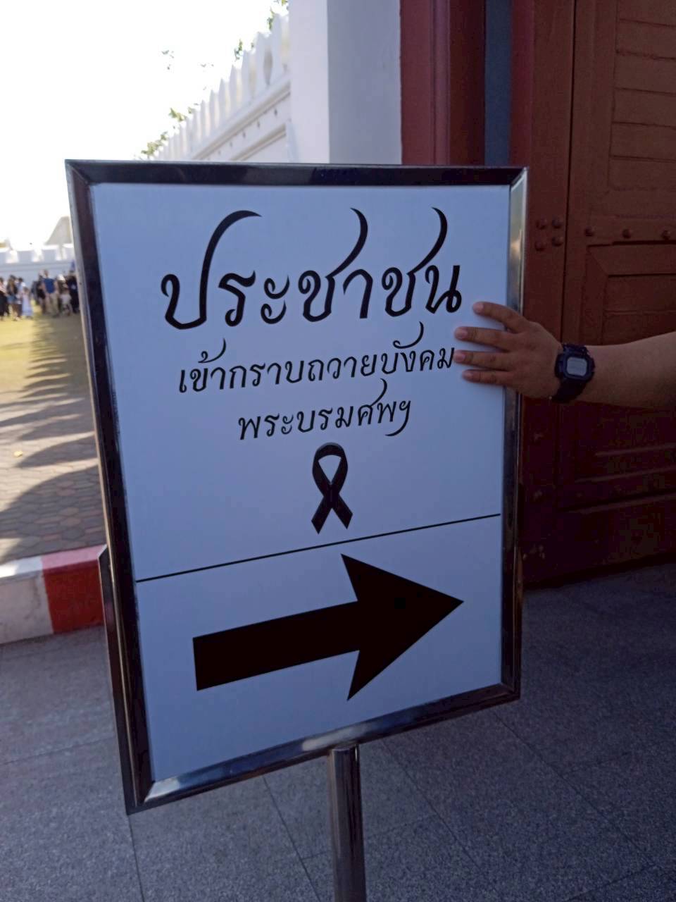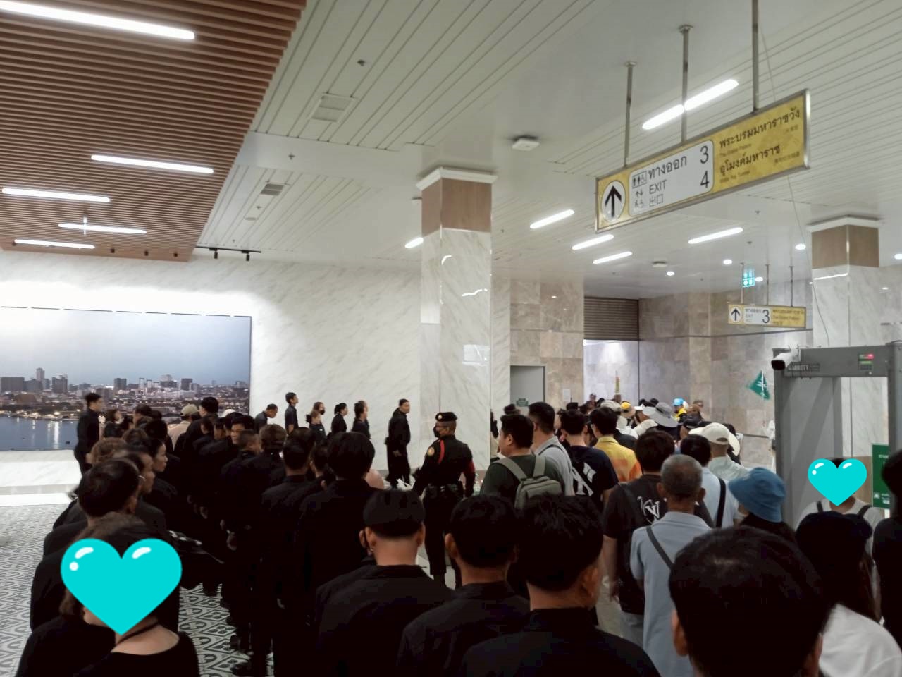 สังเกตว่ากลุ่มคนที่แต่งชุดดำสุภาพเรียบร้อยคือกลุ่มเข้ามากราบพระบรมศพ เดินตามทางบังคับ อย่าเดินแตกแถวไม่หลงแน่นอนค่ะ