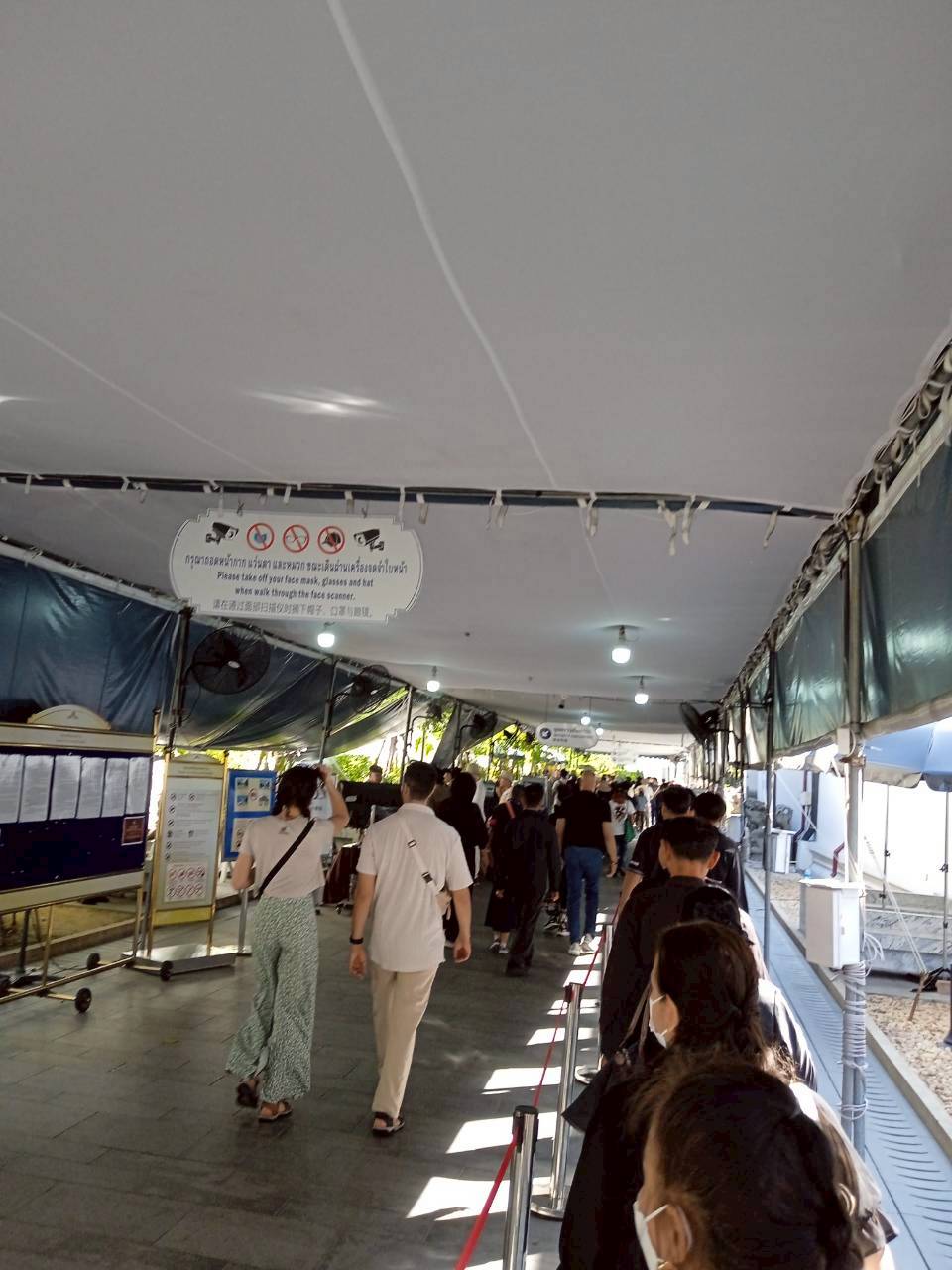 เวลาประมาณ 10.00 น. ต่อแถวตรวจกระเป๋าผ่านเครื่องสแกน และ ลงทะเบียนด้วยบัตรประชาชน เพื่อรับสติ๊กเกอร์หมายเลขประจำตัว หลังจากนี้ไม่ใช้บัตร
