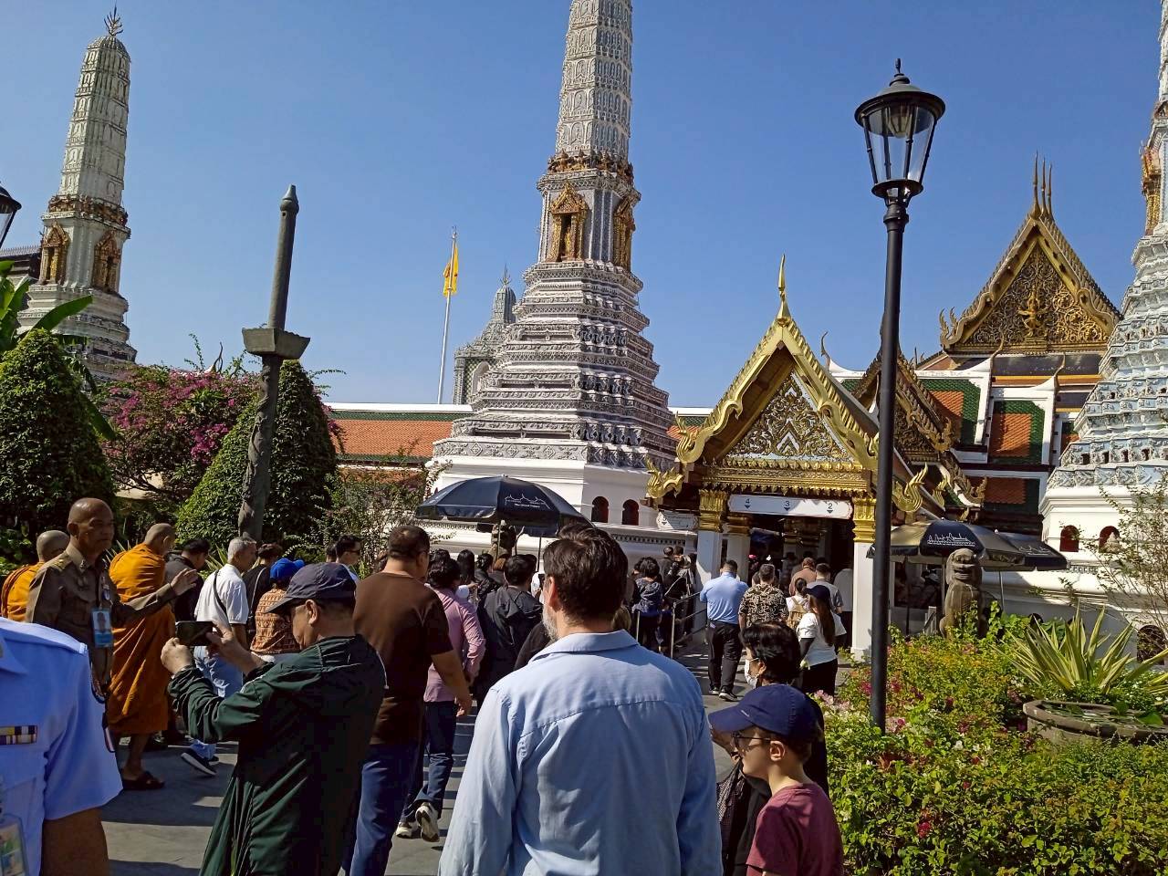 ช่วงวันปีใหม่ คนมากราบเยอะนะคะ ทั้งมาเป็นหมู่คณะและมาเอง ขณะเดียวกันก็มีนักท่องเที่ยวจำนวนมากมาเที่ยววัดพระแก้ว