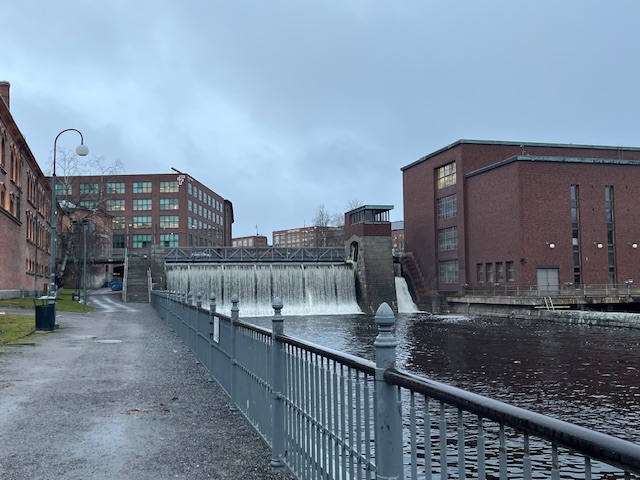 เดินไปเรื่อย ๆ หนูถิ่นก็มาถึง Tammerkoski คลองน้ำและเขื่อนที่เป็นหัวใจของเมืองตัมเปเร่ น้ำไหลผ่านเขื่อนตลอดเวลา เป็นแหล่งพลังงานสำคัญที่เคยใช้ขับเคลื่อนโรงงานในอดีต จนทำให้ตัมเปเร่ ได้ชื่อว่าเป็น “เมืองอุตสาหกรรมแห่งฟินแลนด์”