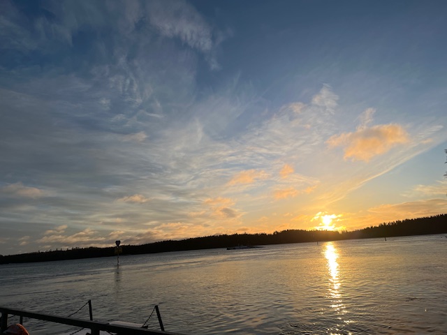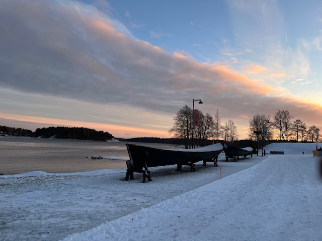 ช่วงเวลานั้นเป็นช่วงที่พระอาทิตย์เริ่มคล้อย ฤดูหนาวที่นี่พระอาทิตย์จะตกประมาณบ่ายสองโมงครึ่ง ท้องฟ้าเริ่มเปลี่ยนสี แสงสะท้อนกับผืนน้ำและหิมะ วิวสวยมากจนลืมความหนาวไปเลยค่ะ