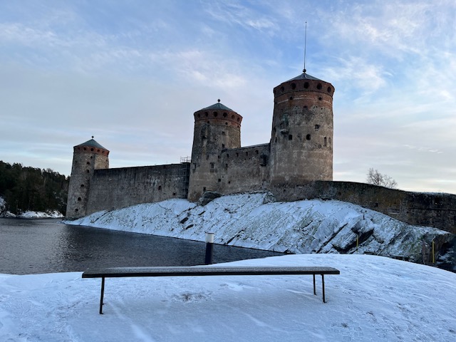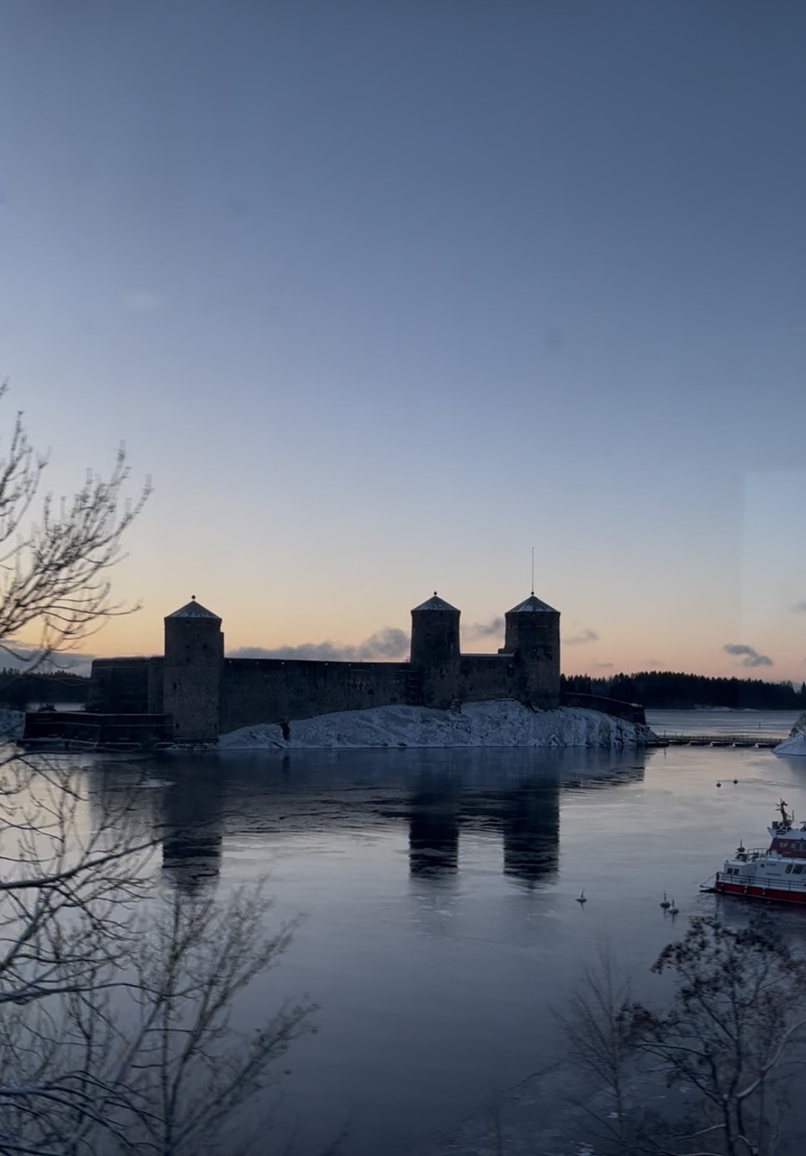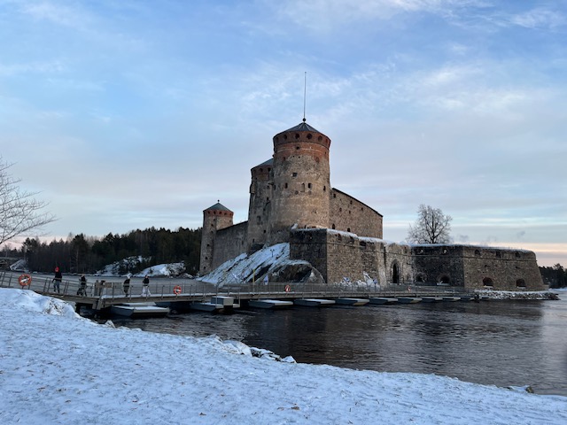 Olavinlinna Castle เป็นปราสาทยุคกลางที่สร้างขึ้นตั้งแต่ ปีค.ศ. 1475 สร้างขึ้นเพื่อป้องกันพื้นที่ทางตะวันออกของฟินแลนด์ ปราสาทตั้งอยู่กลางน้ำ ยิ่งมาเห็นด้วยตาตัวเองในฤดูหนาว ยิ่งรู้สึกถึงความขรึม สง่า และมีพลังบางอย่างค่ะ