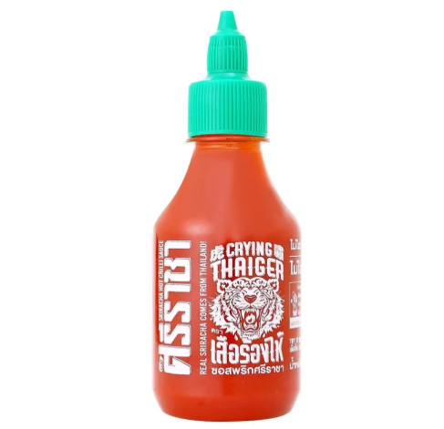 หาซอสพริกศรีราชาที่เป็นสีเเดงเเต่มีรสเผ็ดติดลิ้นค่ะ