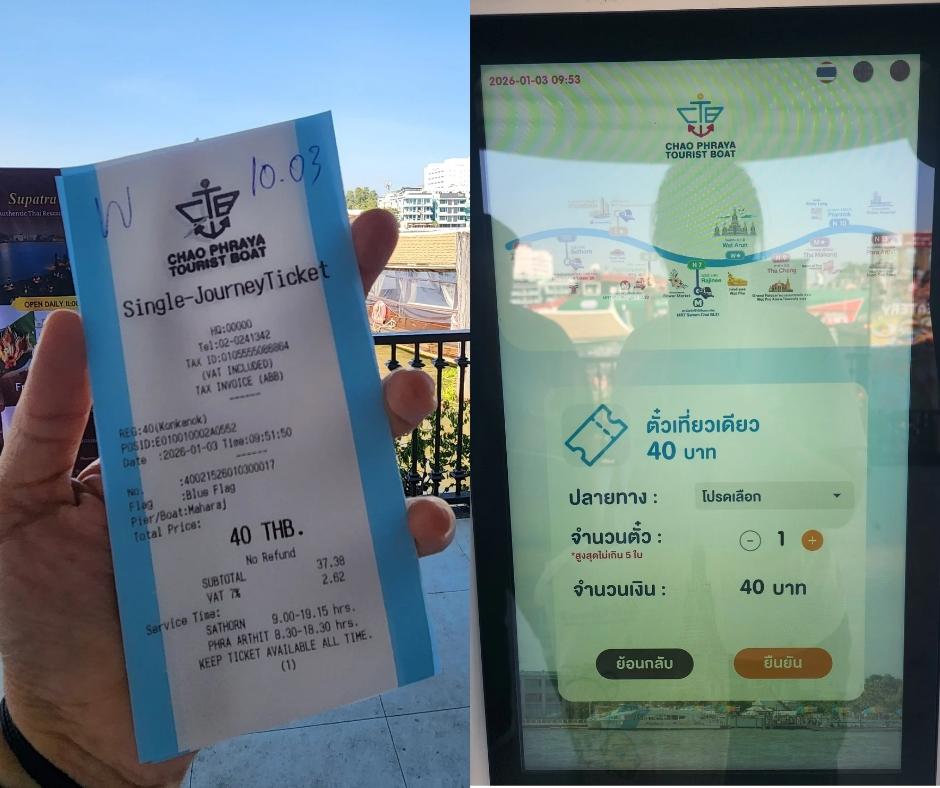 - เดินทาง (เรือสีฟ้า) : 40 บาท