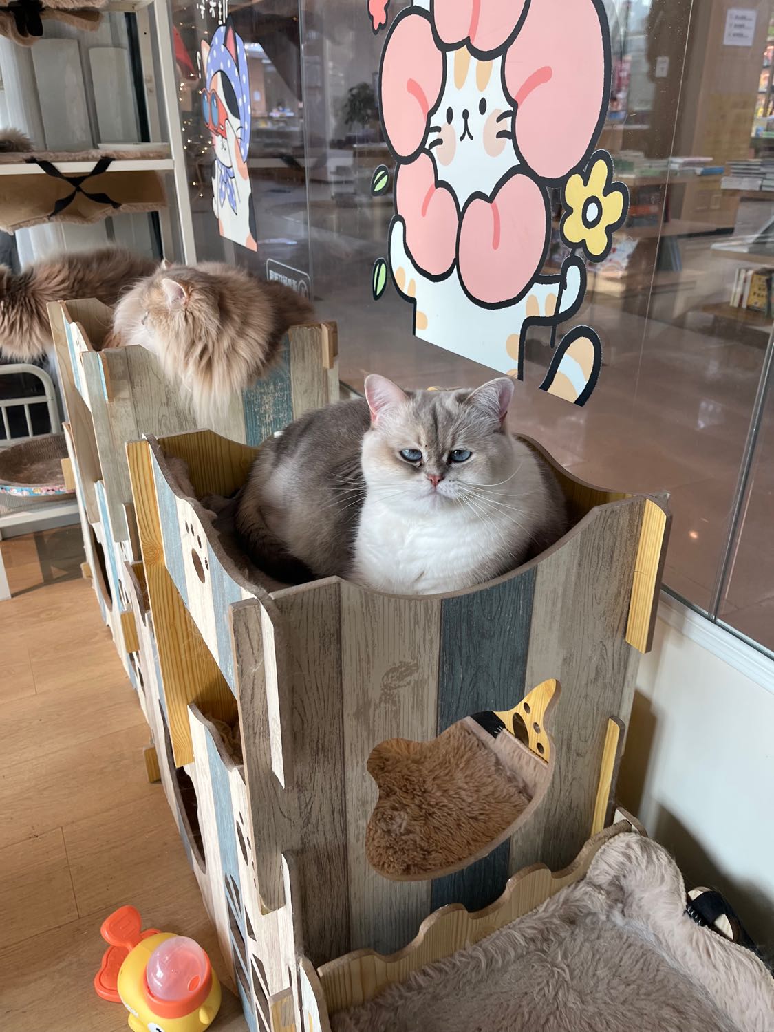 แต่สิ่งที่ดูดเงินเราไปคือเจ้าคาเฟ่แมวบนร้านหนังสือ เย้ ได้ลองคุยจีนกับน้องแววเจ้าถิ่นสักที
