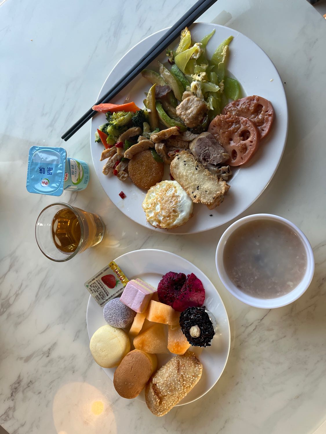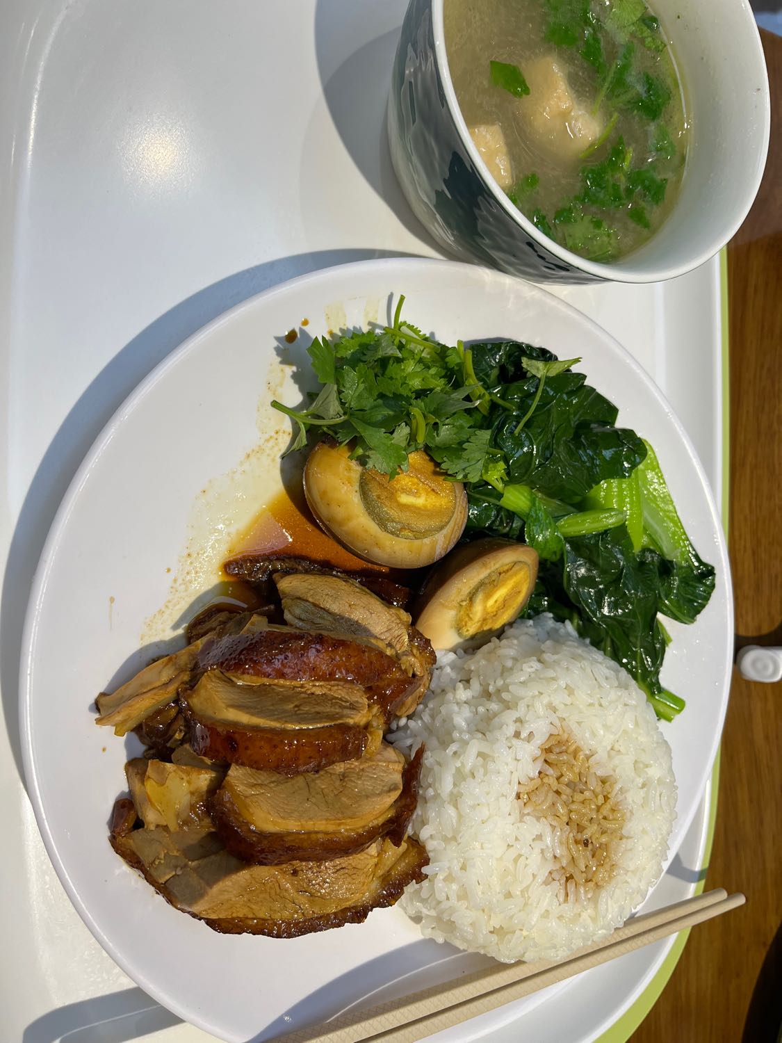 ข้าวกลางวันที่โรงอาหารของ Porcelain Tower สะอาดและอร่อยมาก มีต้มเลือดเป็ด ก๋วยเตี๋ยววุ้นเส้น ข้าวหน้าเป็ด ข้าวมันไก่