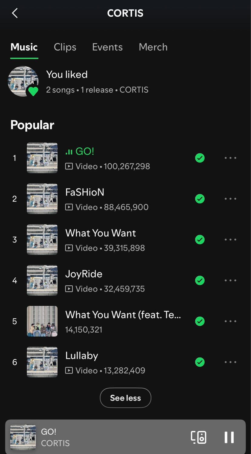 เข้าสู่เส้นชัย 100 ล้านสตรีมเป็นที่เรียบร้อยแล้วสำหรับ Go! ของรุกกี้ี้น้องใหม่อย่าง Cortis (100, 267,298 สตรีม)โดยใช้เวลาไปทั้งหมด 117 วัน ด้วยสถิตินี้ทำให้ Go! กลายเป็นเพลงที่มียอดสตรีมถึง 100 ล้านสต