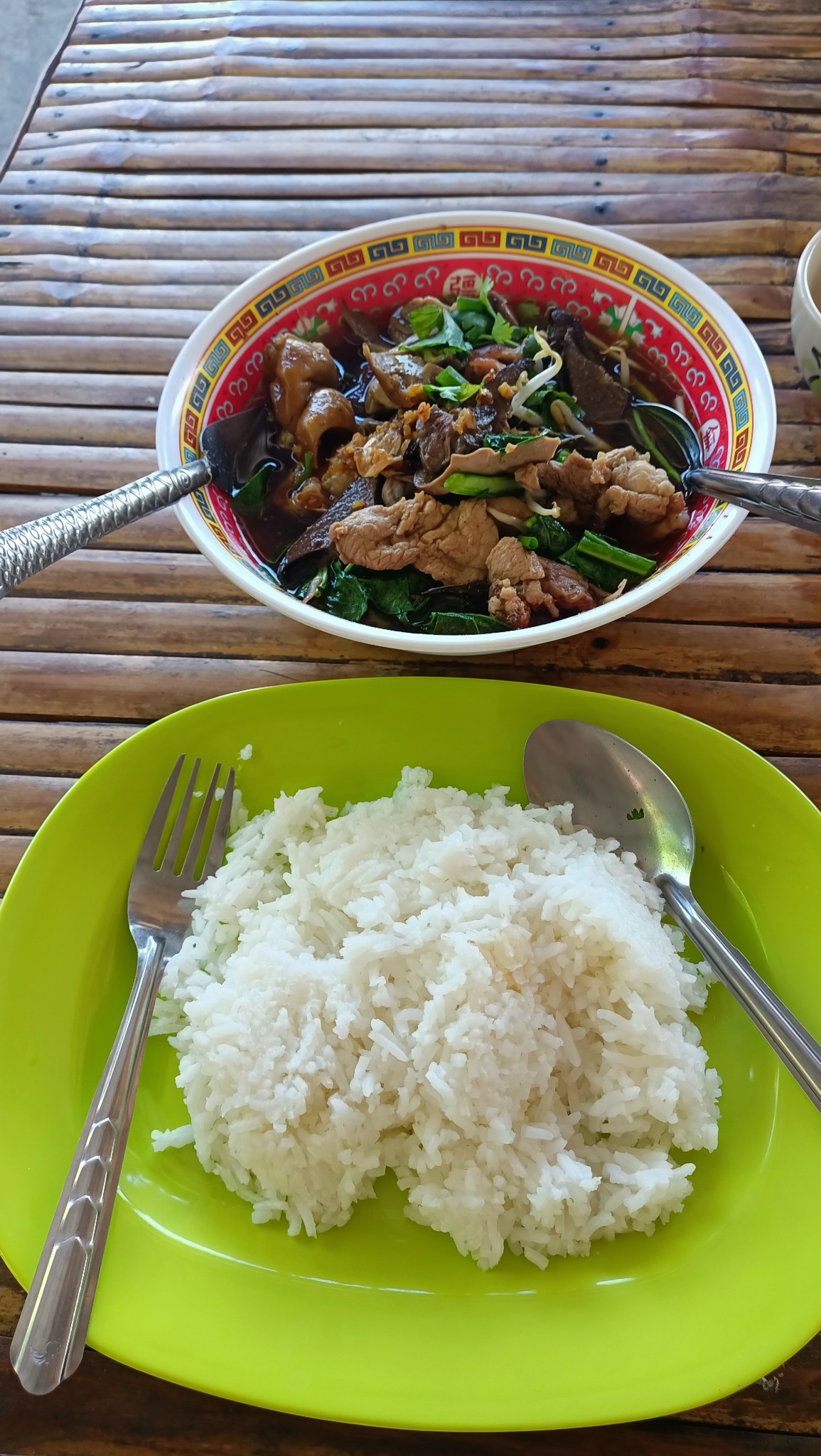 เกาเหลา ใส่ทุกอย่าง ข้าวเปล่า และก๋วยจั๊บ รวม 110 บาท