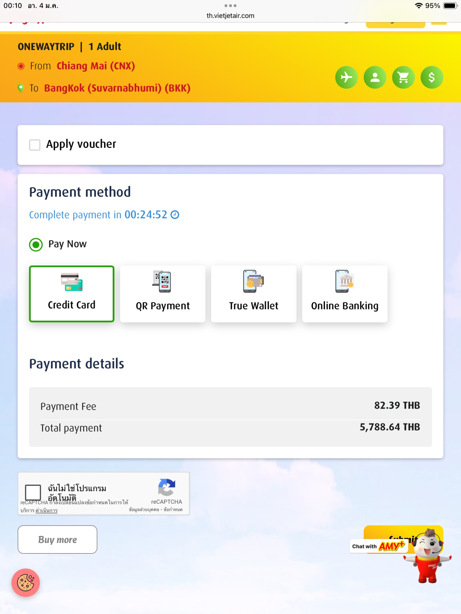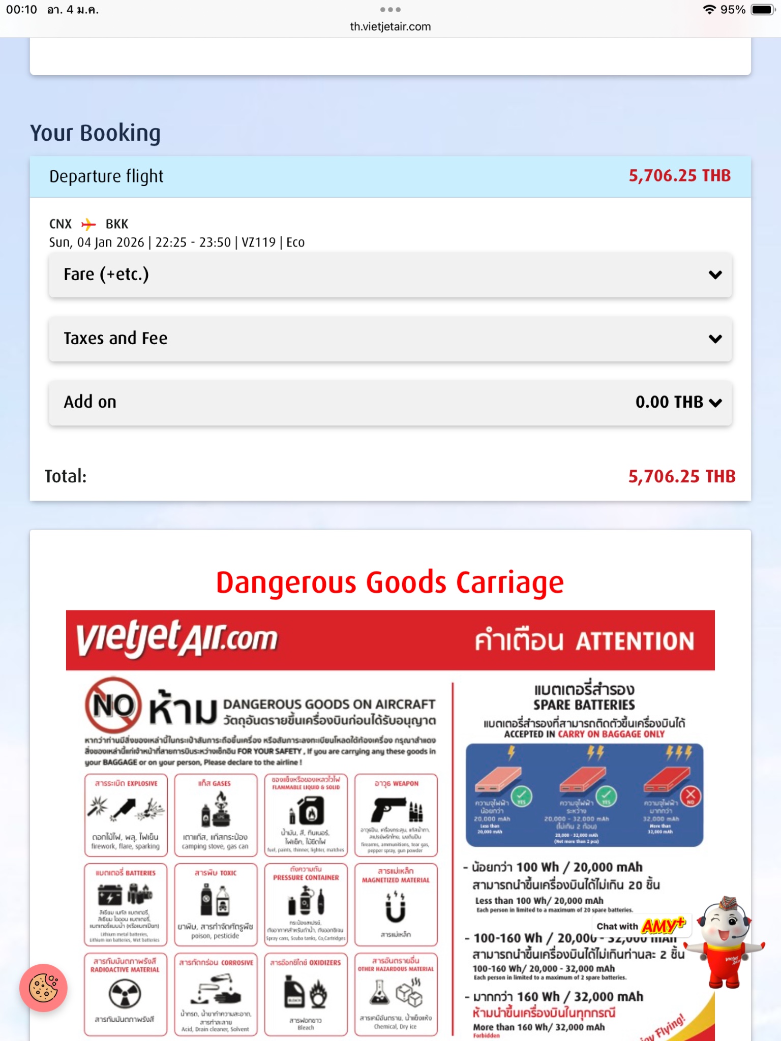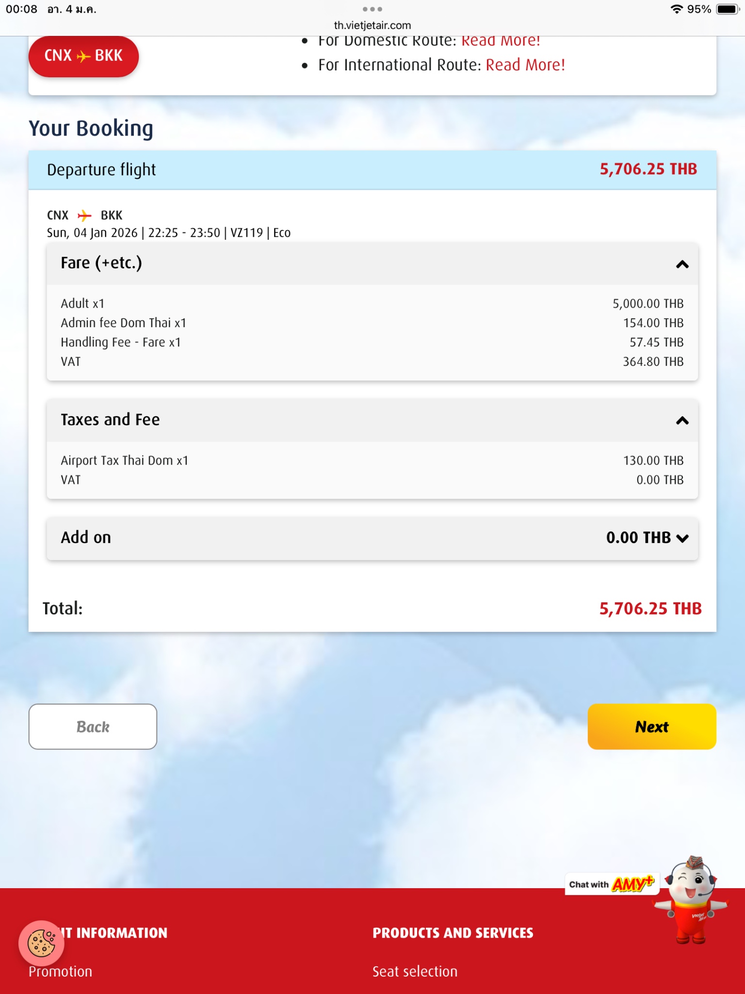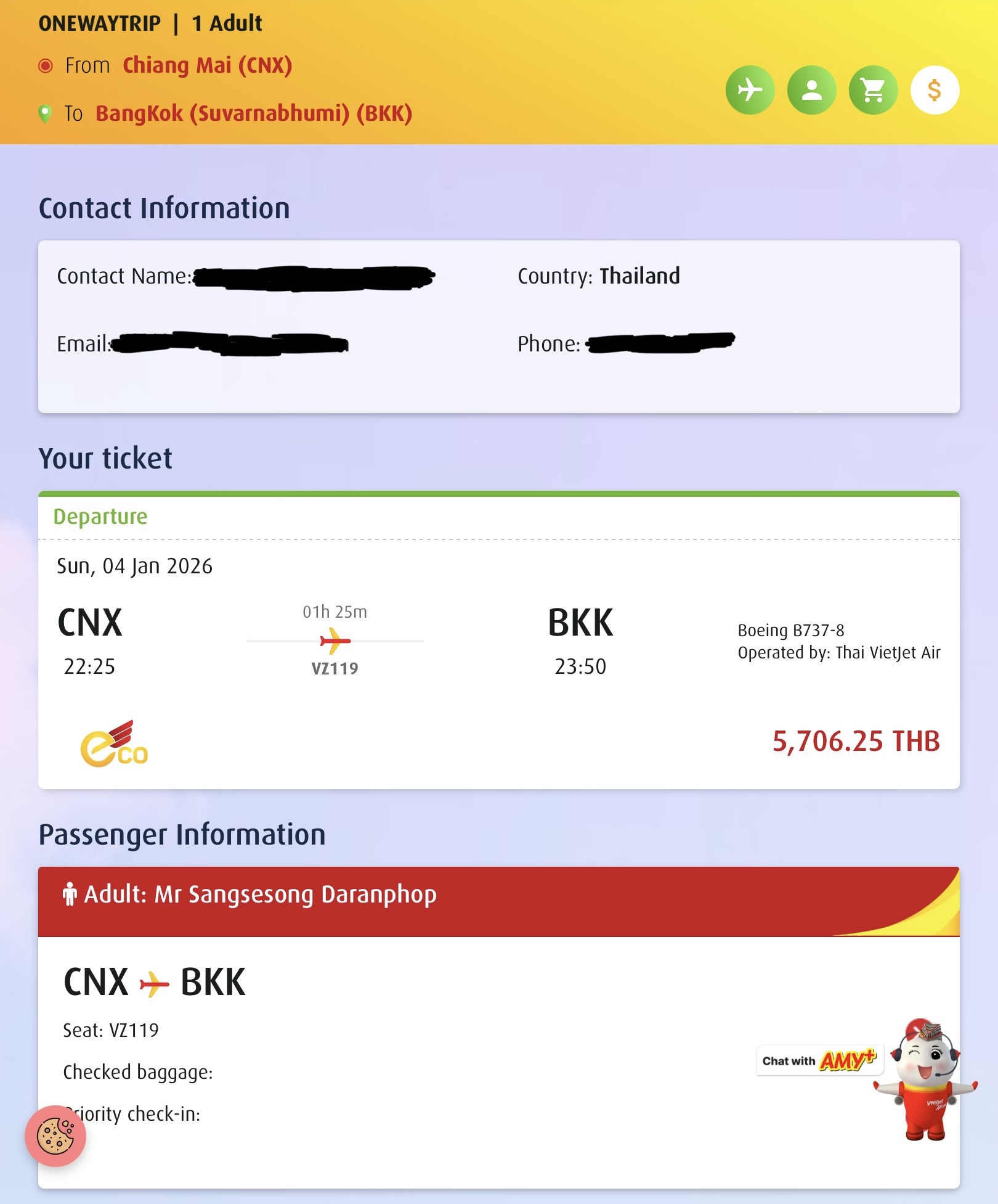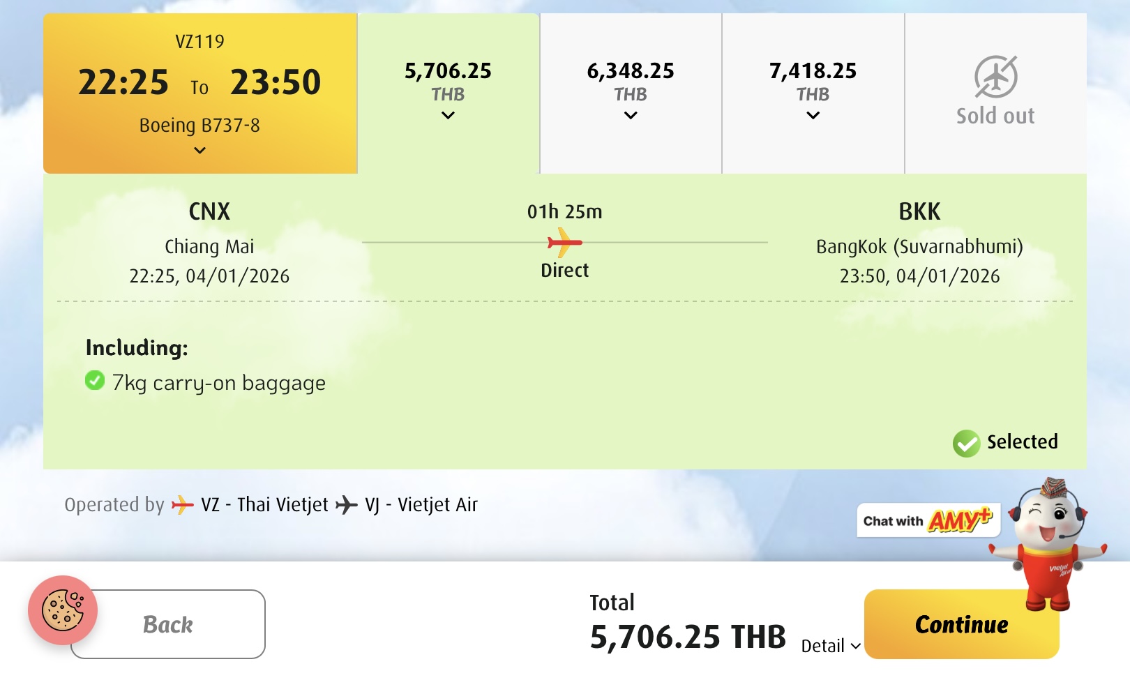 ThaiVietjet เชียงใหม่-กรุงเทพ 5706.25 บาท