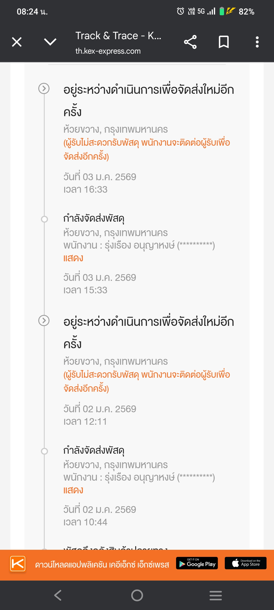 ขนส่ง KEX ส่งช้ามาก ไม่อัพเดทสถานะ