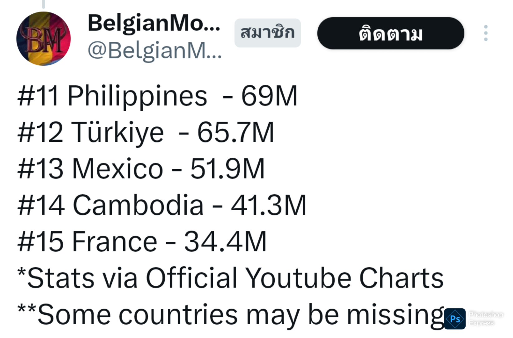 เบม่อนครองสถิติยอดวิวสูงที่สุดในประเทศนั้น แต่เพจที่เอามาโพสต์คงจะหาข้อมูลมาแค่ 3 ประเทศเดี๋ยวจะติดตามต่อให้เผื่อจะมีประเทศเพิ่มมาอีกนะ