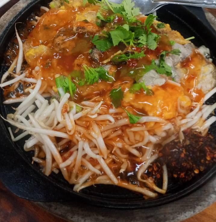 มาเป็นกระทะร้อน มีซอสหวาน และซอสพริกมาให้