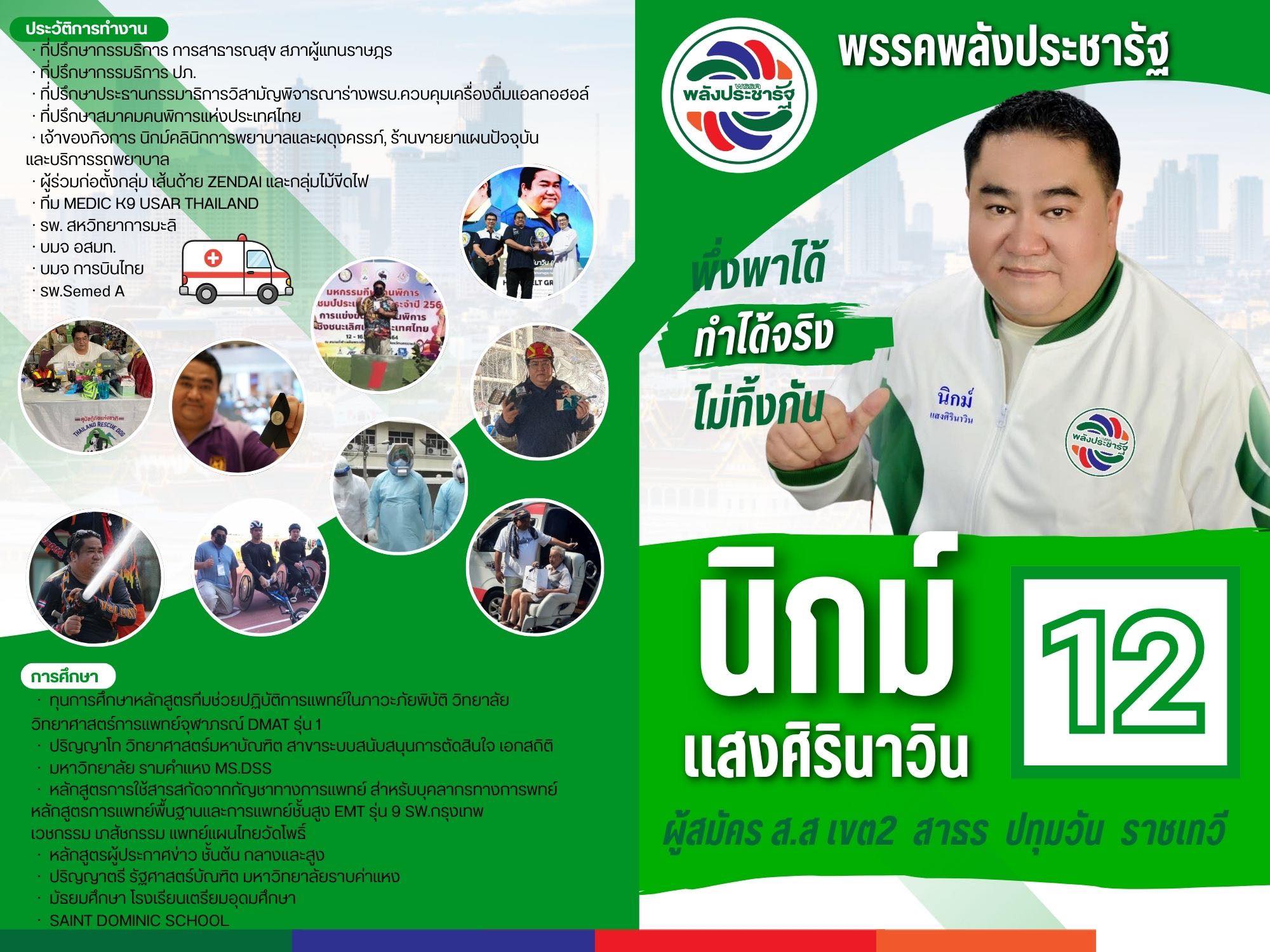 ผู้สมัครสส.กทมเขต2 สาทร ปทุมวัน ราชเทวี นิกม์ แสงศิรินาวิน เบอร์ 12 พรรคพลังประชารัฐ