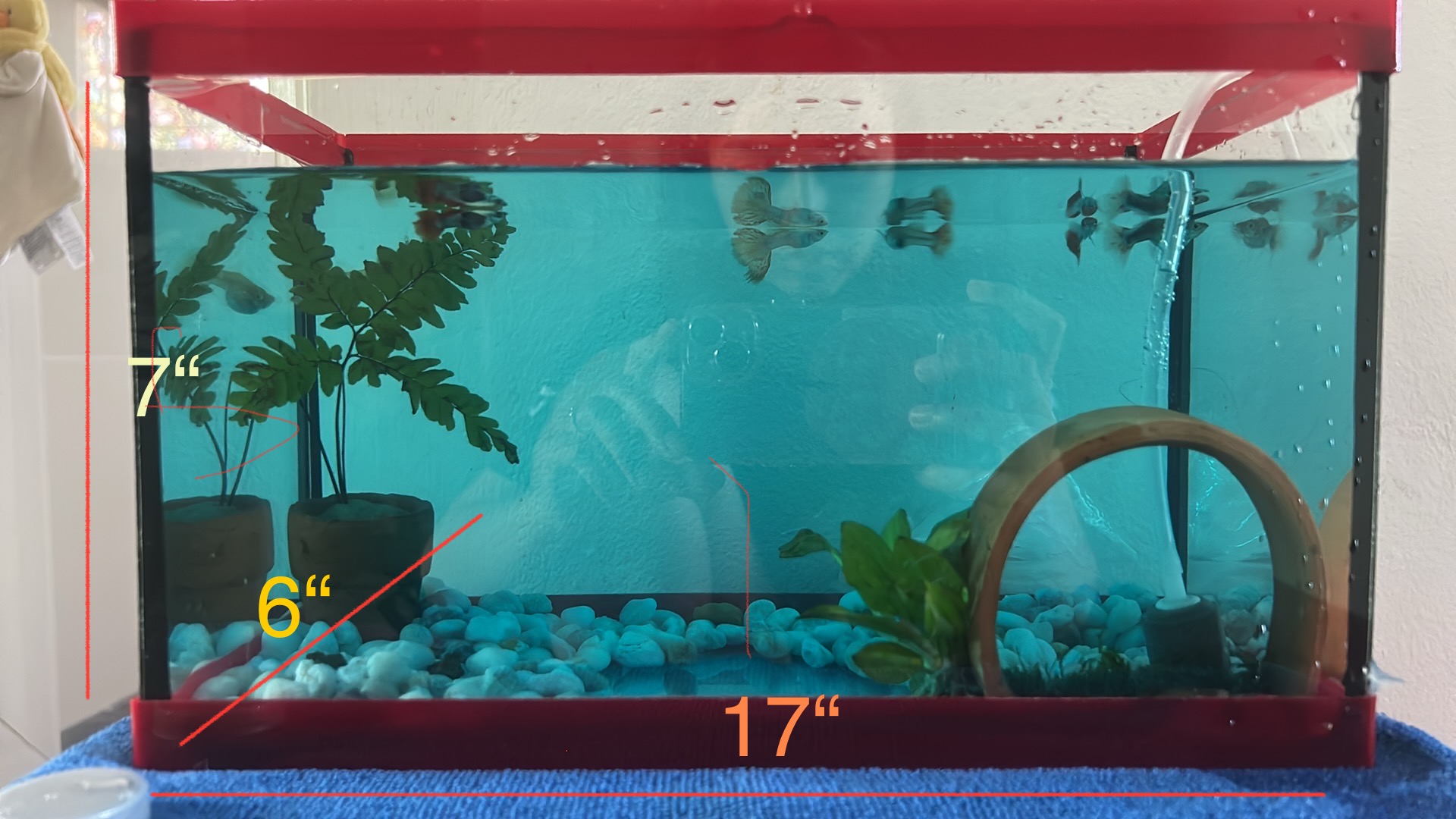 ปลาหางนกยูง 6 ตัว เลี้ยงตู้ขนาด 12x6x7 นิ้ว เล็กไปไหมคะ