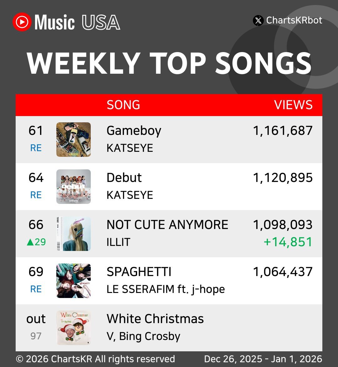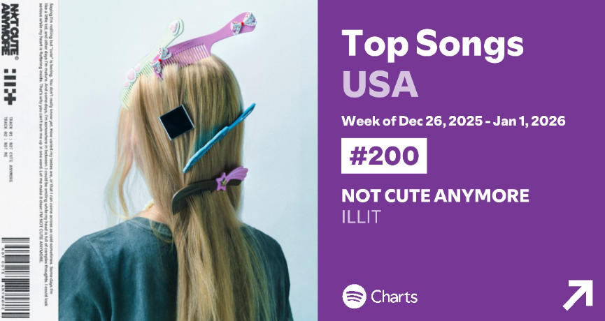 เพลง NOT CUTE ANYMORE - ILLIT ทำ new peak บน YouTube Music USA Top Song Weekly Chart