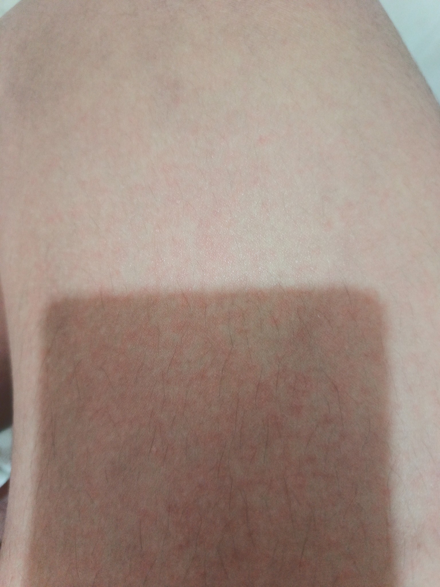 วันที่3ไข้ลดลงอย่างกระทันหัน คือรู้สึกดีมากนึกว่าจะหายแล้ว แต่สังเกตเห็นปื้นสีแดงที่แขน ต้นขา และท้อง มีอาการคันนิดๆพอข่มตานอนได้ผมนอนไวนะ20:30ก็นอน