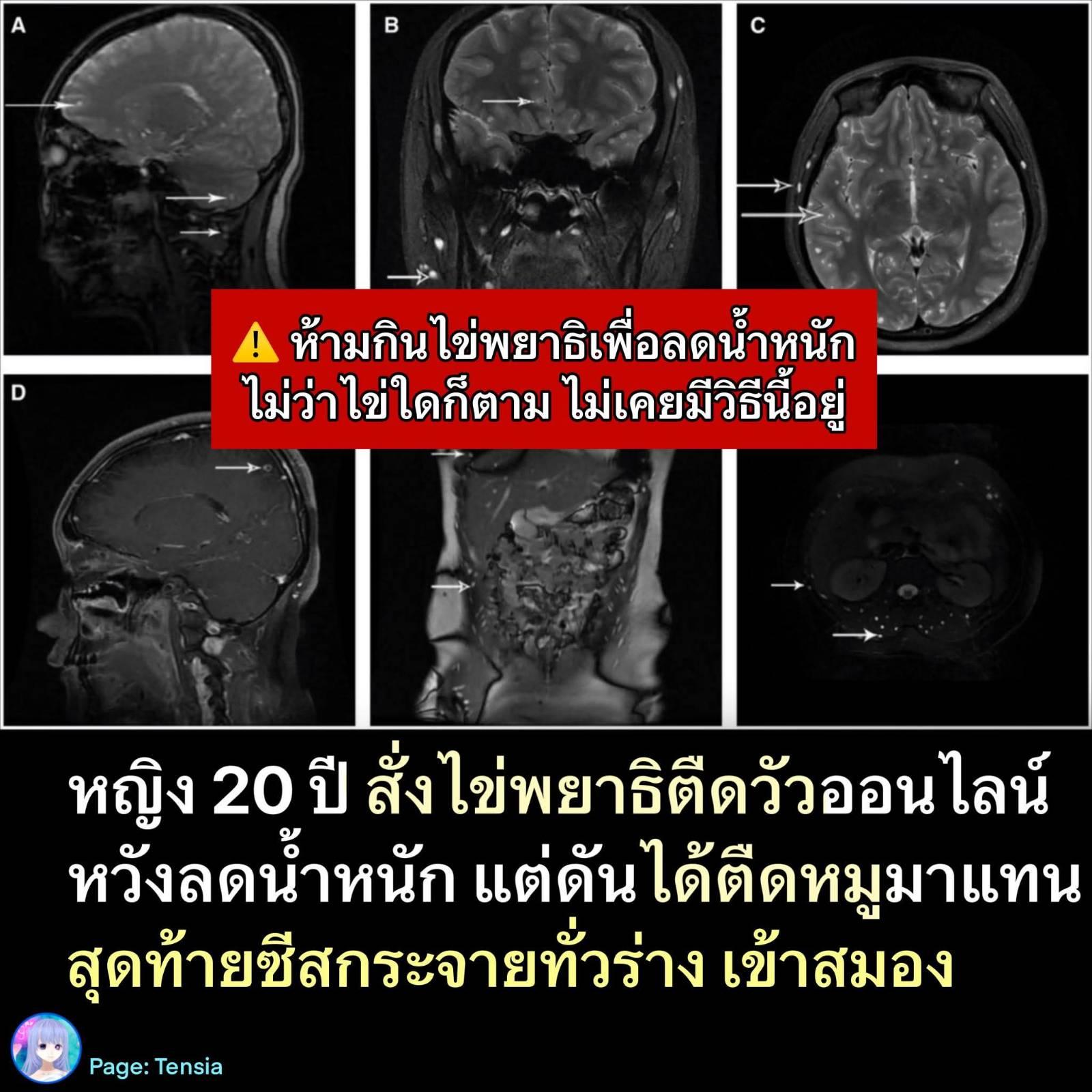 เคสหญิง 20 ปี อยากลดน้ำหนัก สั่งไข่พยาธิตืดวัว แต่ดันได้ตืดหมูแทน หวังจะเลี้ยงพยาธิลดน้ำหนักในไส้ กลายเป็นซีสกระจายทั่วร่าง