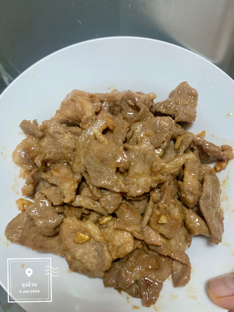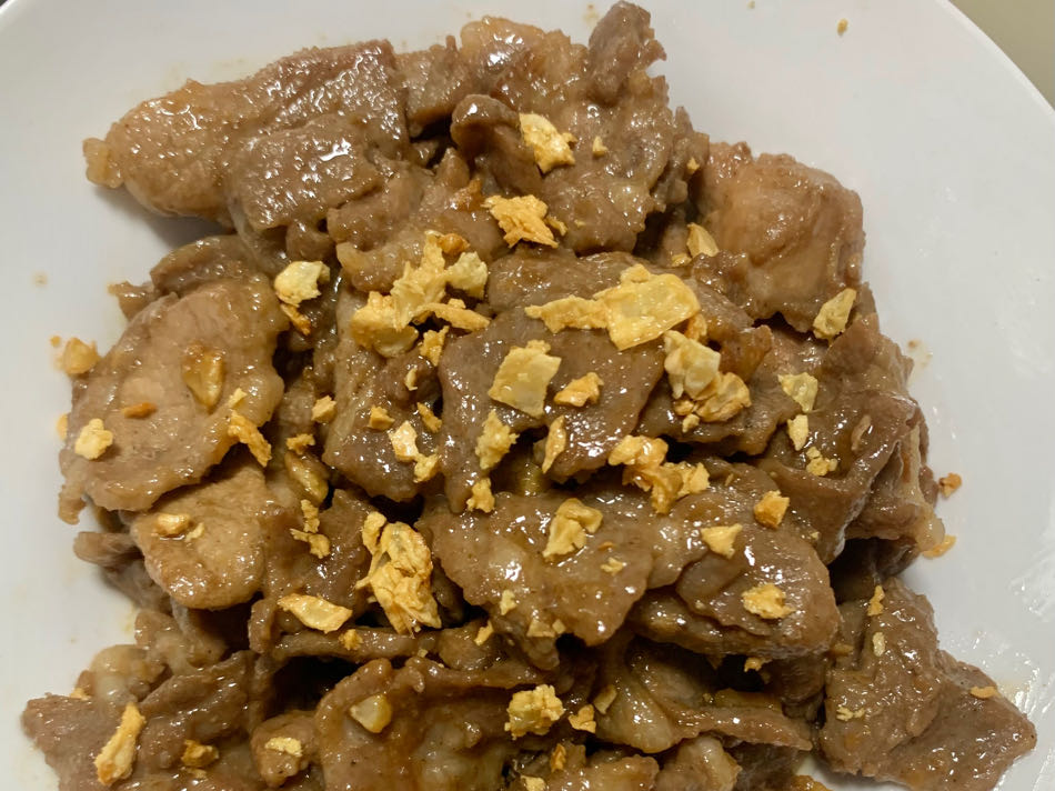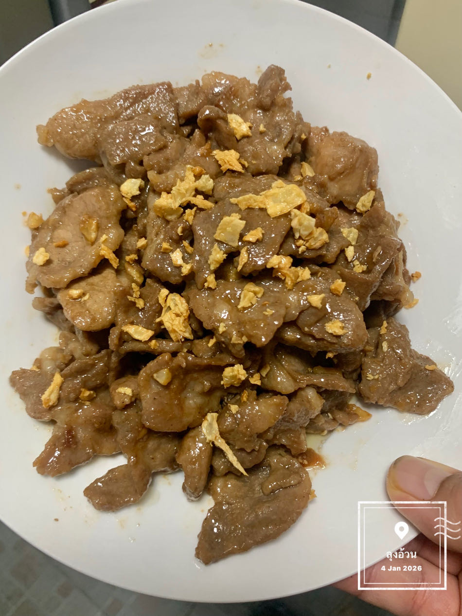 หมูกระเทียมโรยกระเทียมเจียวราดพริกน้ำปลา