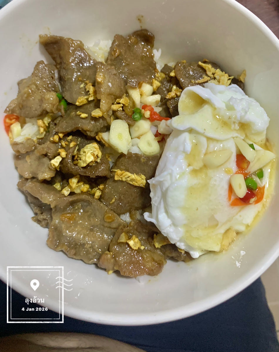 ข้าวหมูกะเทียมราดน้ำเกรวี่ไข่ออนเซน