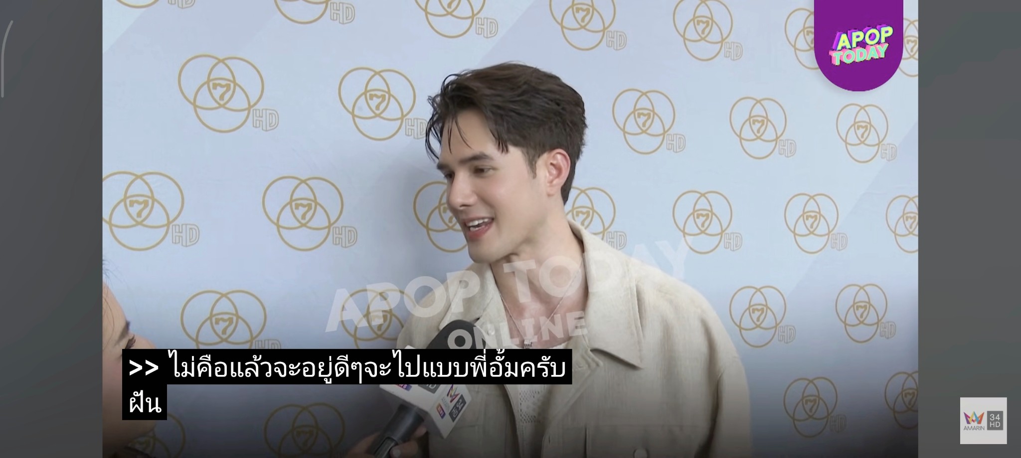 “แฟน ๆ น่ารัก ผมอยู่วงการมา 16 ปี ตามผมมาตลอด มันอยู่เหมือนเป็นครอบครัว บางคนที่บ้านรู้จักกัน เขายังซัปพอร์ตเรามาจนถึงทุกวัน ก็ขอบคุณพี่ ๆ น้อง ๆ ทุกคน ที่สนับสนุนเรื่องงานละคร ธุรกิจร้านอาหารเรา ตอนนี้อายุโตขึ้น เราก็พยายามรู้สึกเราไม่โตขนาดนั้น เรื่องสุขภาพสำคัญสุด ดูแลตัวเอง มีคุยกับพี่ ๆ ว่าถ้าผม 75-80 ยังเดินแข็งแรงได้ก็สบายใจแล้ว โฟกัสอย่างแรกสุขภาพดูแลออกกำลังกายดี อย่างที่สองเรื่องของงานธุรกิจต่าง ๆ อยากได้ร่างทองกลับมา เห็นหลายคนกลับมาเยอะแล้ว แต่เราค่อย ๆ ทำ ไม่อัดแน่นขนาดนั้น ตอนนี้อายุ 33 แล้วนะความรักก็มองถึงอนาคต ทำงานเยอะไม่ทันได้เหงา ก็มีคุยเล่น ๆ บ้าง ยังไม่จริงจัง ต้องค่อย ๆ มองหาแม่ของลูก เกณฑ์ผมง่าย ๆ คุยเข้าใจ ซัปพอร์ตกัน แค่ช่วงนี้ไม่มีโอกาสคุยจริงจังกับใคร“