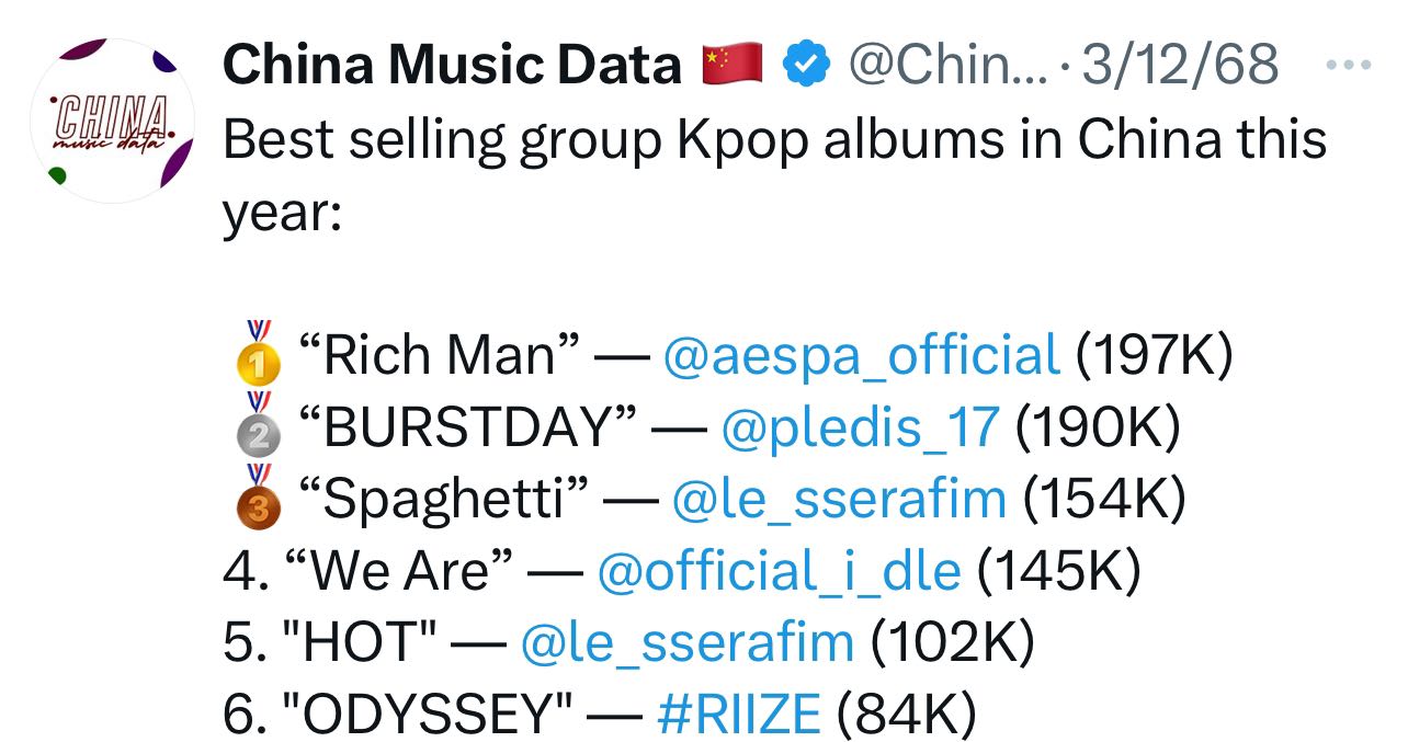 ยอดขายดิจิทัลอัลบั้มในจีนทั้งหมด🇨🇳