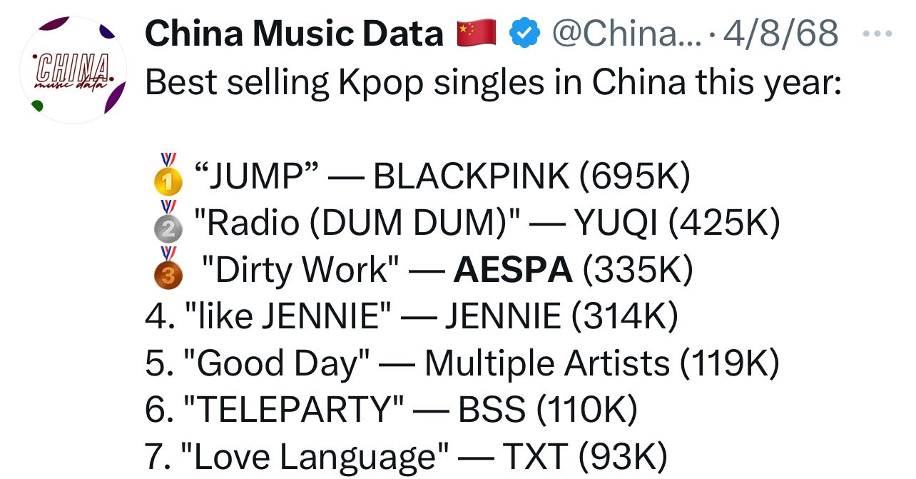 ยอดขายดิจิซิงเกิ้ลในจีนทั้งหมด🇨🇳