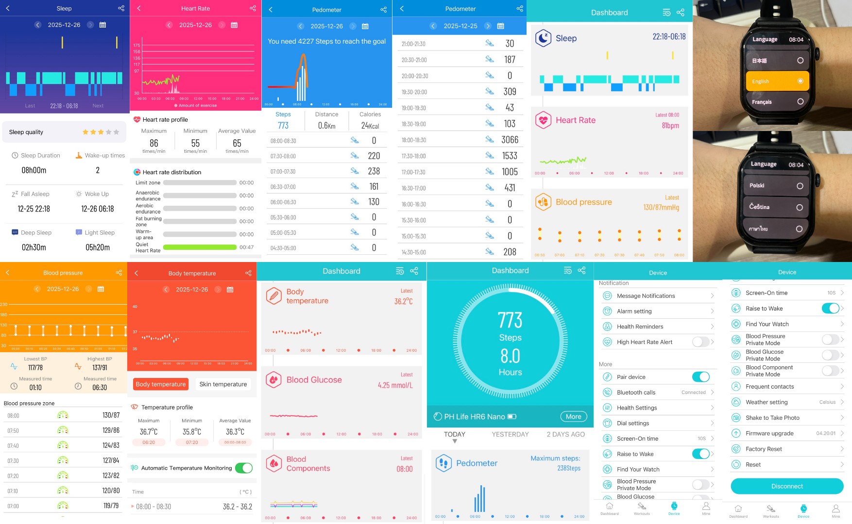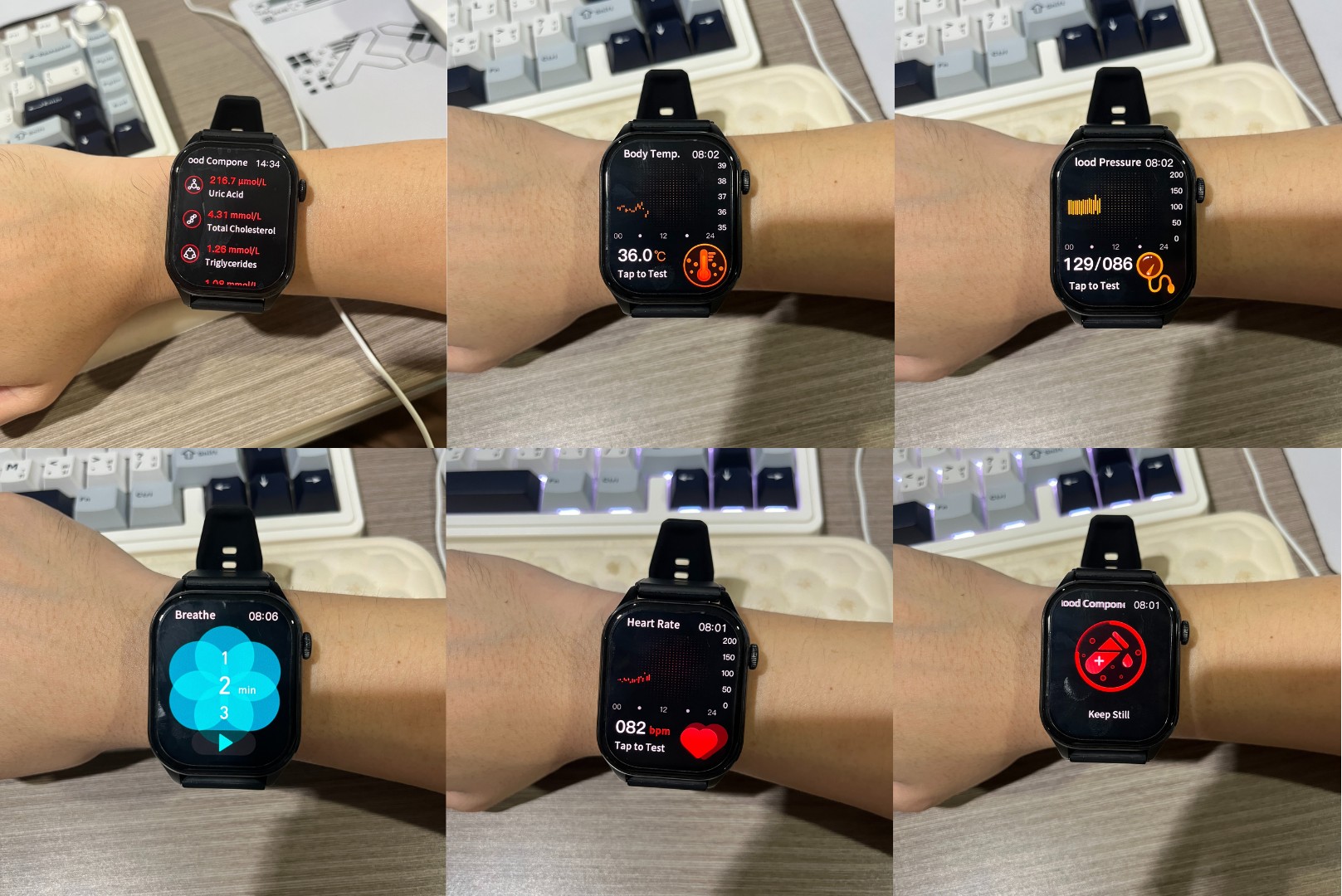 อันนี้เป็นฟังก์ชันสุขภาพ ให้มาเยอะมากกก ทั้ง วัด heart rate, ความดันโลหิต, น้ำตาลในเลือด, องค์ประกอบเลือด, ไขมันในเลือด, อุณหภูมิร่างกาย สามารถถถฝึกหายใจได้ด้วย วัดได้ตลอดทั้งวัน วัดค่าได้แม่นยำด้วยนะ ใกล้เคียงกับเครื่องตรวจดีๆเลย สามารถใช้วัดเบื้องต้นได้เลย บอกข้อมูลในแอปละเอียดยิบ