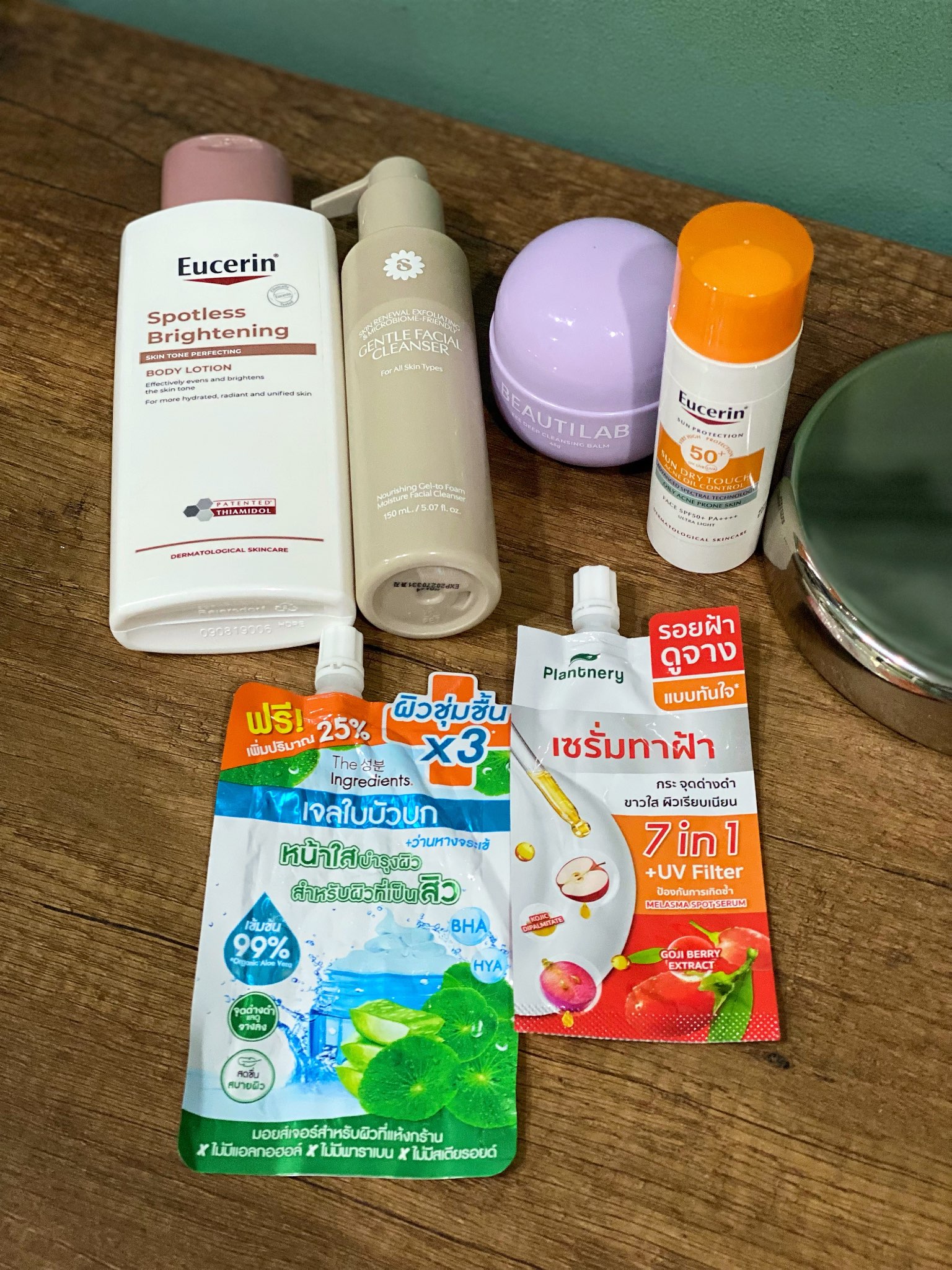 __.มีอยู่แล้วโยนลงเป้ค่ะ (เราทาเจลใบบัวบกก่อนนะ) ถึงลงครีมทาผิวแล้วก่อนนอน โบกเจลใบบัวบกเพราะเราไม่ได้เอาครีมกันแดดทาตัวไปเลย (ลืม)
