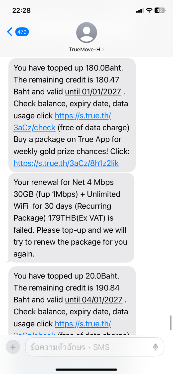 เติมเงินไปแล้วซิมไม่ตัดค่าเน็ต TrueMove