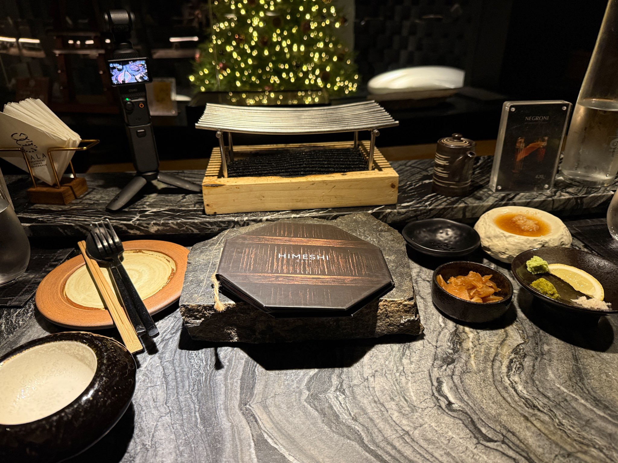 เค้าจัด Himeshi courses เป็นข้าวอบ กระดูกปลา ทานกับ วัตถุดิบเนื้อต่างๆ ย่างบนถ่าน เสริฟสไตล์โอมากาเสะ