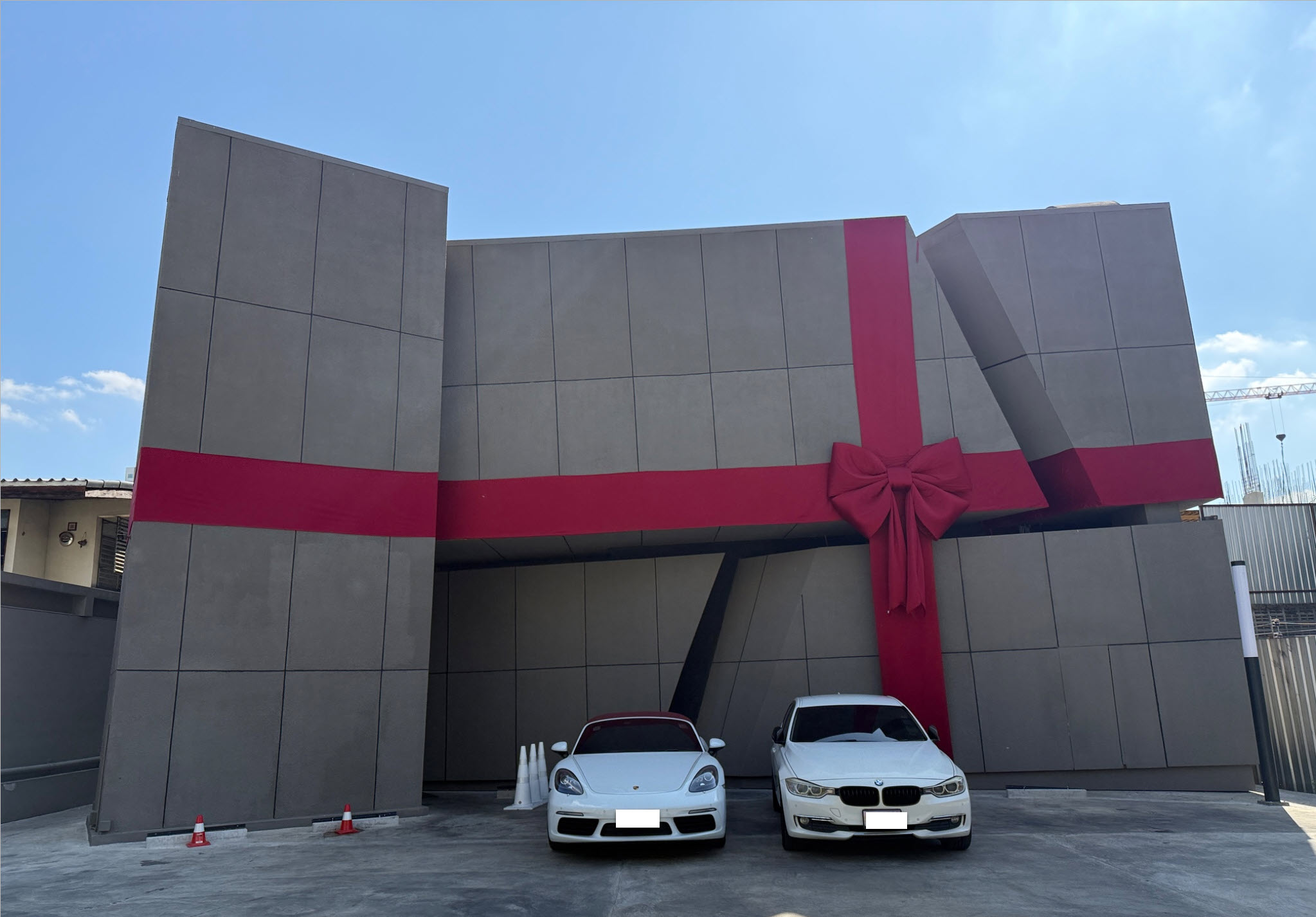 ต้วอาคารภายนอกเก๋าทำเป็น Box ผูกโบว์แดงเก๋