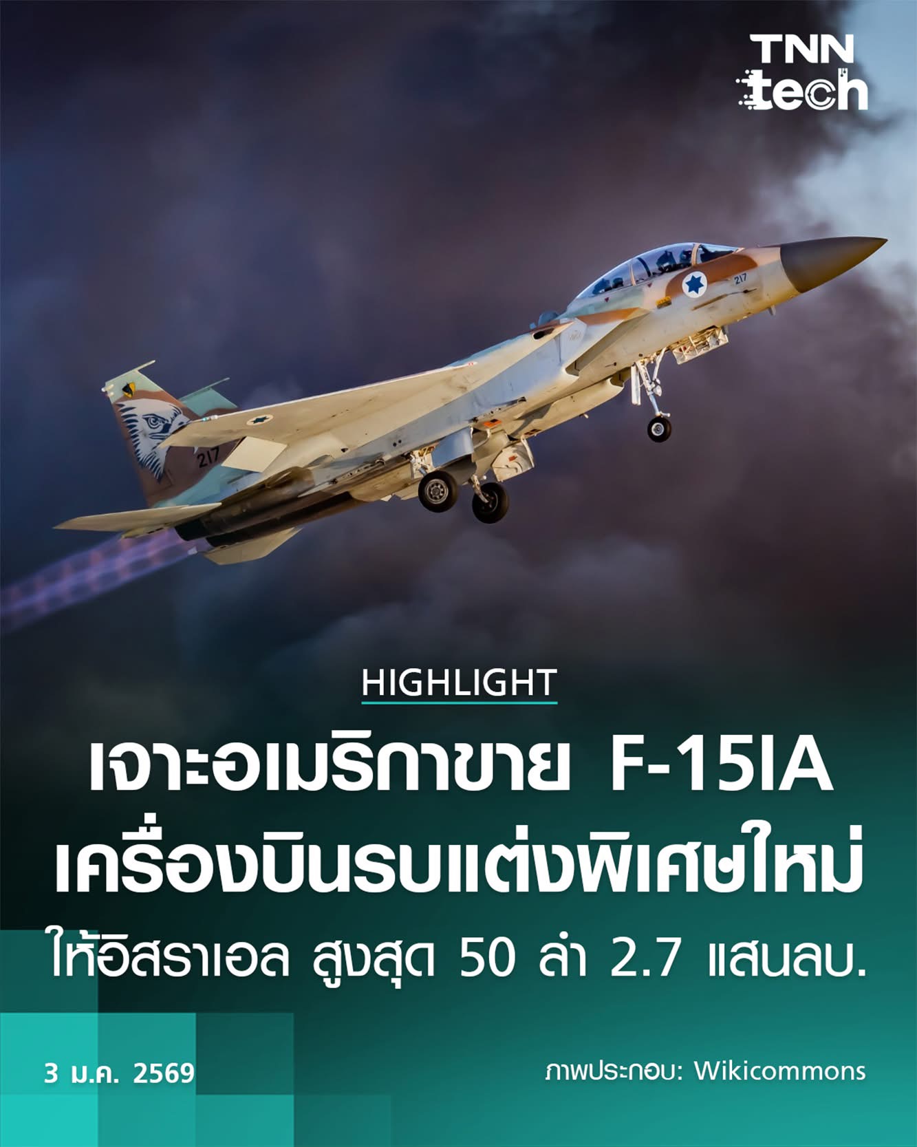 ระทรวงการสงคราม (Department of War) หรือเพนตากอนของสหรัฐอเมริกา อนุมัติกรอบการขาย F-15IA (Israel Advanced) เครื่องบินขับไล่ยุคที่ 4.5 ปรับแต่งพิเศษสำหรับอิสราเอล สูงสุด 50 ลำ ในมูลค่าสูงสุด 8,600 ล้านดอลลาร์สหรัฐ หรือประมาณ 270,000 ล้านบาท โดยขยายเพดานจากเดิม 25 ลำ ที่อนุมัติให้ขายก่อนหน้านี้