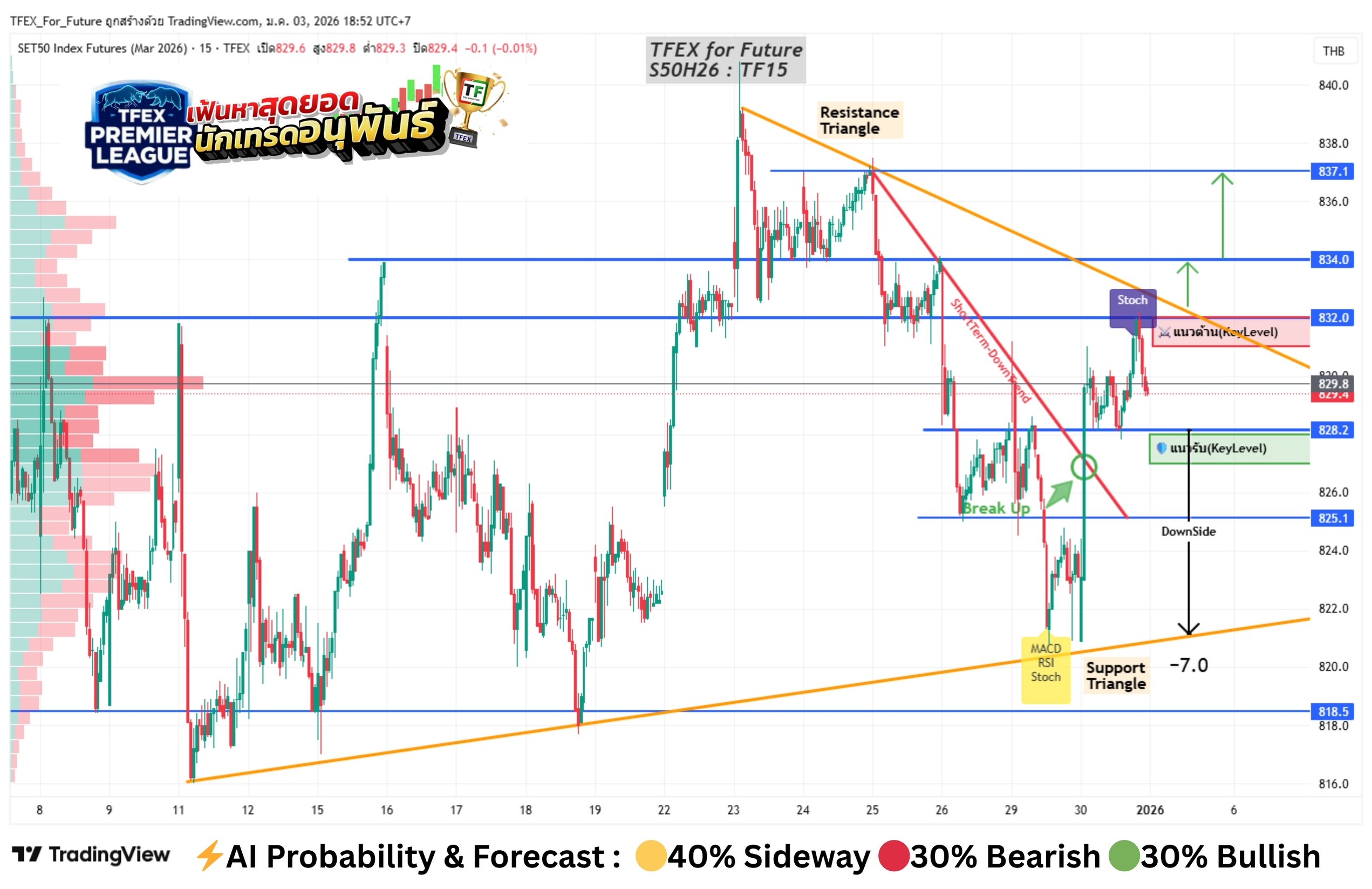 ⚔️แนวต้าน (Resistant) : 831-832 (จุดร่วม 4 Indicators)