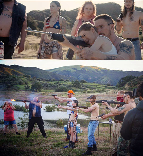 ครอบครัวชาวอเมริกันผิวขาวไปเที่ยวทะเลสาบกับเพื่อนๆ รอยสักของพวกเขาบ่งบอกถึงกลุ่มนีโอนาซี