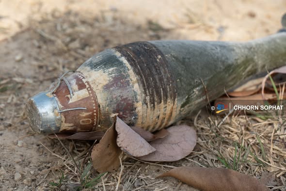 เหมาะสมแล้ว ที่เกิดมาเป็นลูกปืน ค. ในเขมร สำนักข่าวกัมพูชาถ่ายภาพซากลูก ค. ที่อ้างว่าเป็นของไทยยิงใส่เป้าหมายพลเรือน