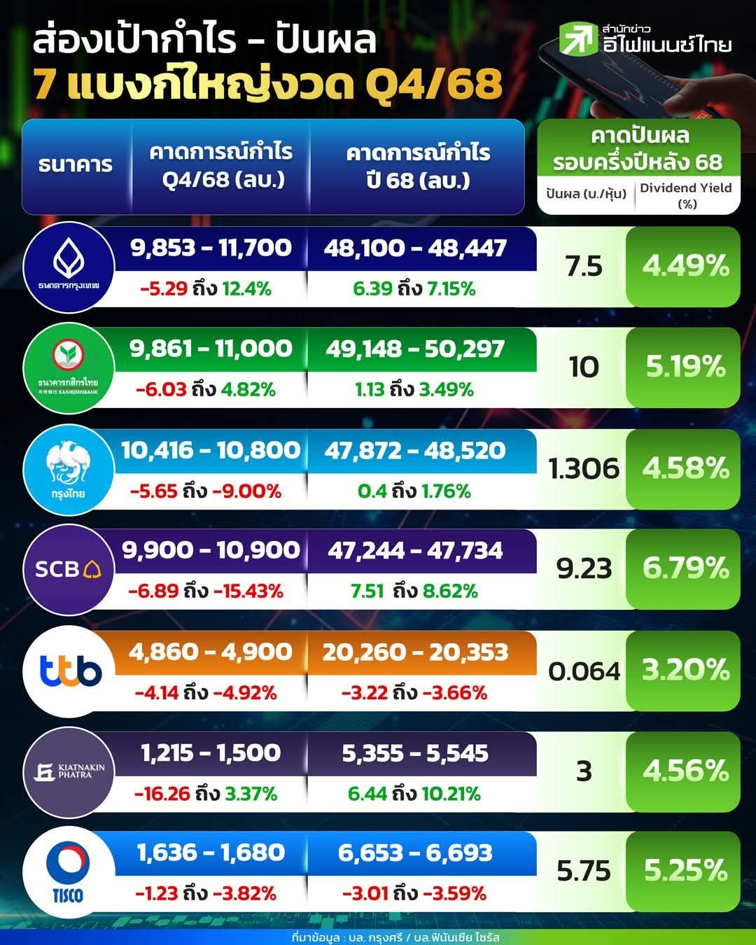 คาดการณ์กำไร bank ใหญ่ + ปันผลรอบต้นปี 📍