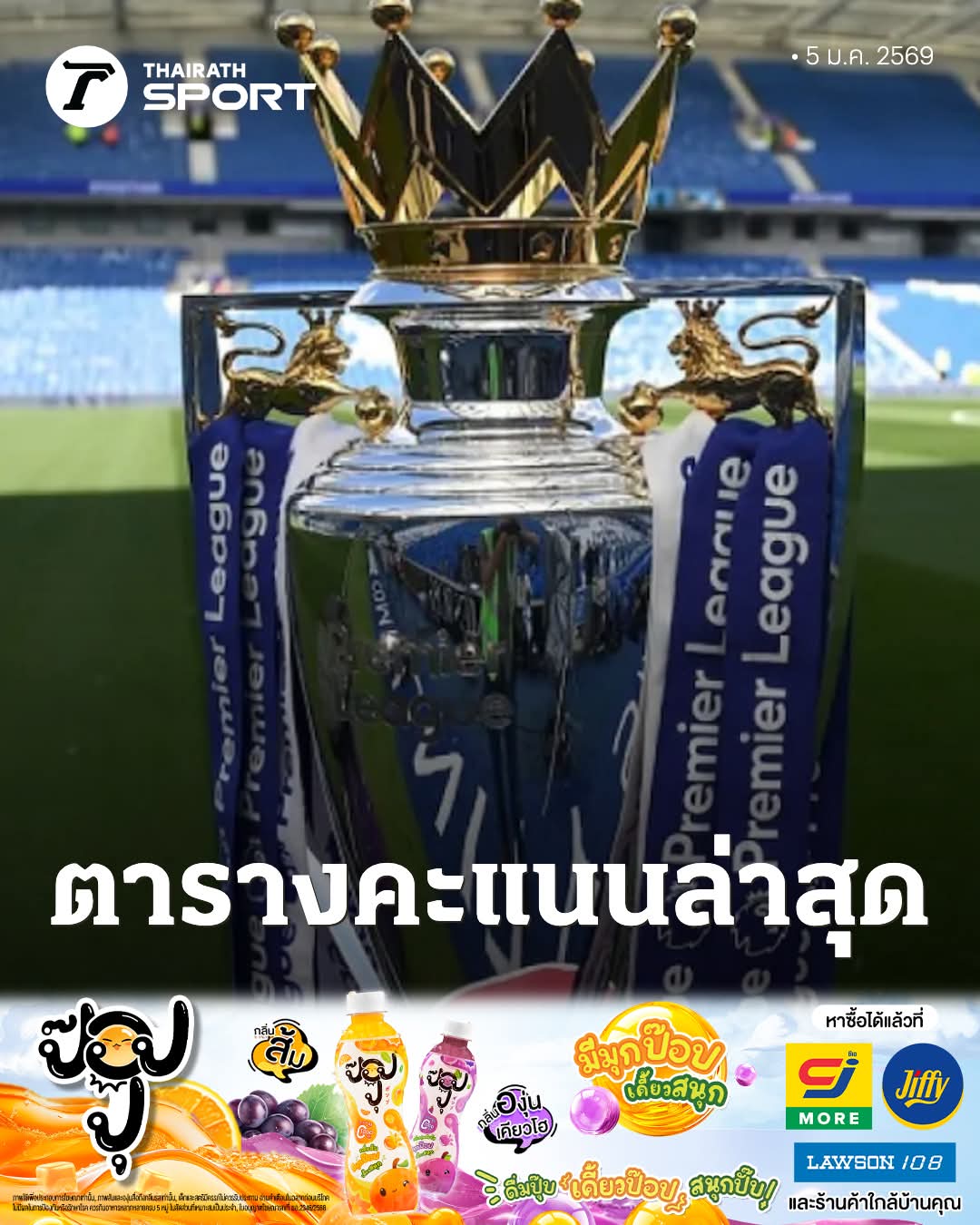 สรุป ตารางคะแนนพรีเมียร์ลีก 2025-26 อัปเดตล่าสุด วันที่ 5 ม.ค. 69