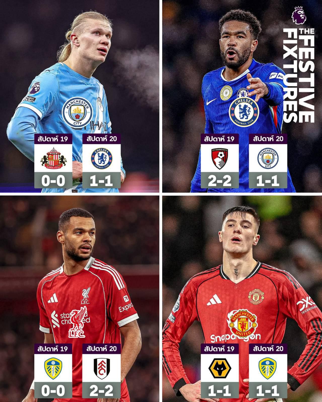 ส่วนแมนซิตี้ แมนยูไนเต็ด ลิเวอร์พูล เชลซี ผลงาน 3 วันดี 4 วันไข้ไม่มีทีมไหนที่จะมีทีมที่จะทำผลงานได้อย่างคงเส้นคงวาเลยสักทีมโดยเฉพาะ 2 นัดล่าสุดต่างก็เก็บไปได้แค่ 2 แต้มยิ่งเชลซีถึงขั้นเด้งพี่โล้นมาเรสก้าออกจากตำแหน่งกันเลยทีเดียว