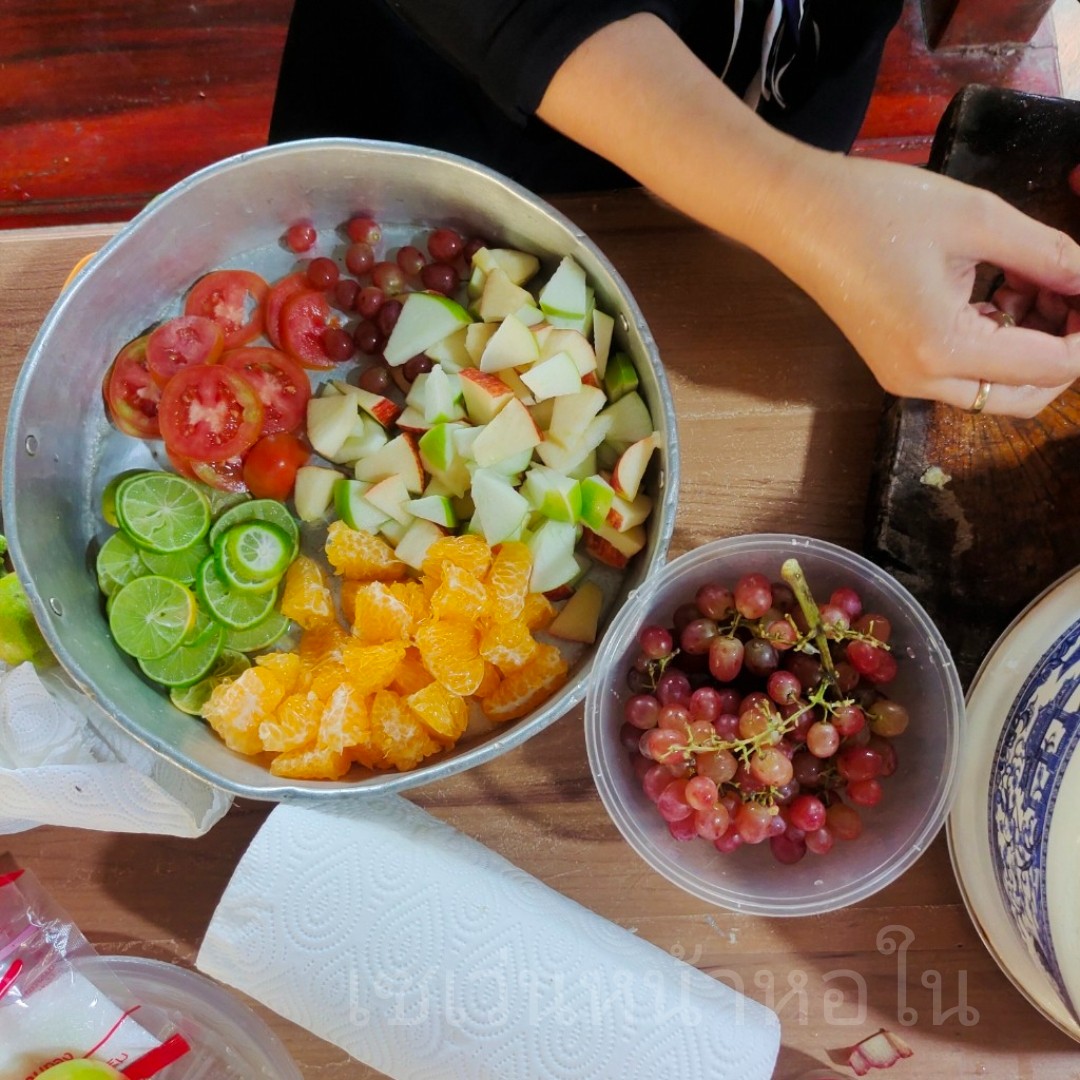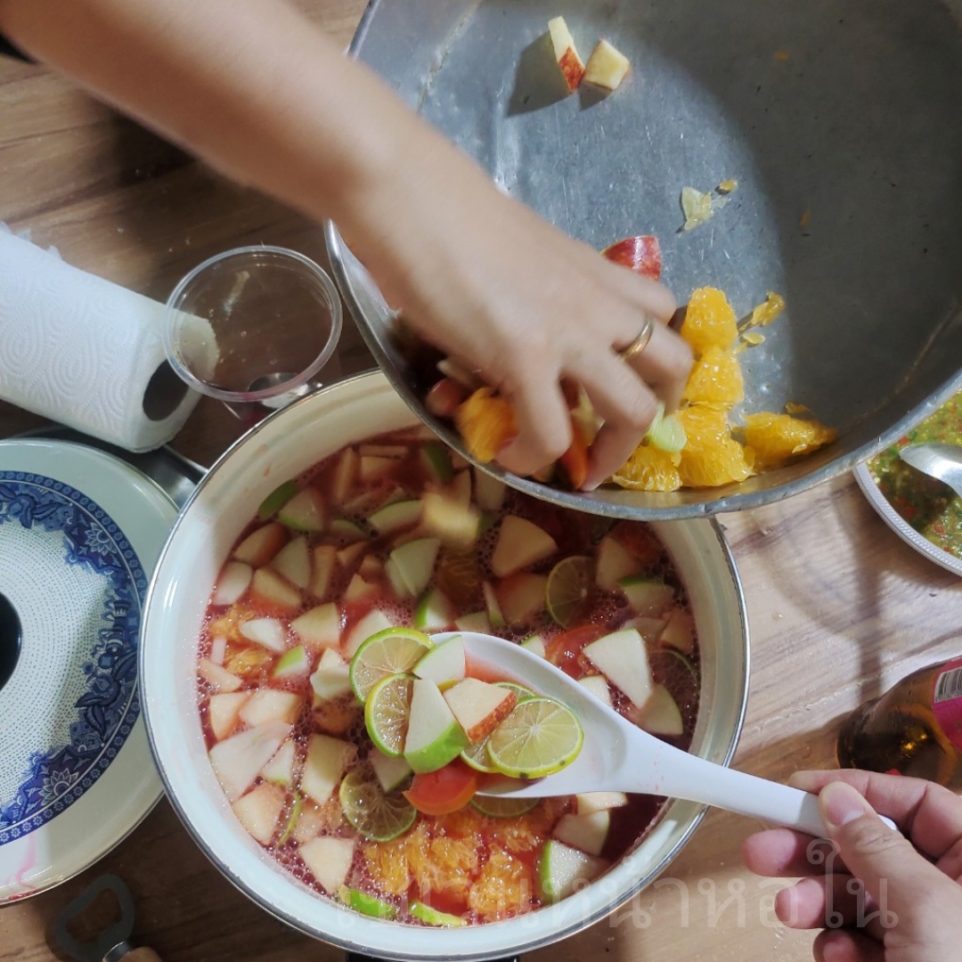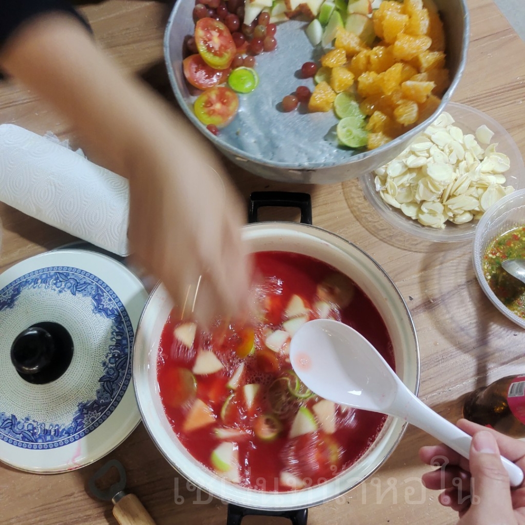 อาหารคืนเค้าท์ดาวน์มีลูกชิ้นปิ้ง ยำ หมูมะนาว ต้มเล้งหม้อใหญ่