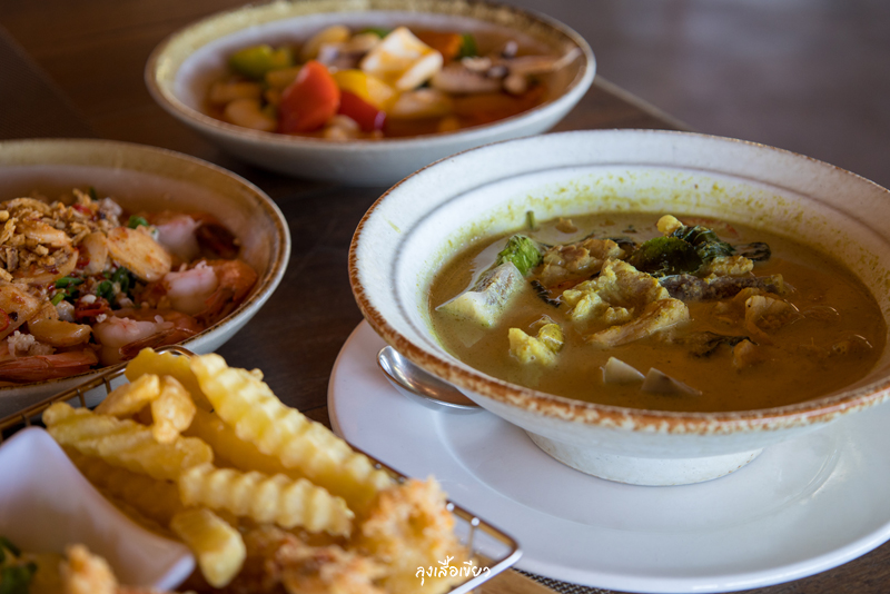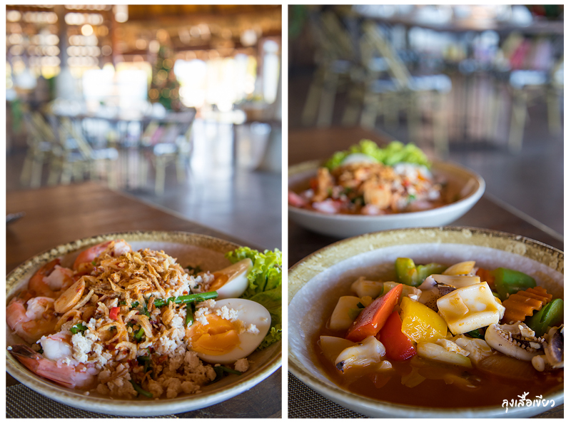 ผมมาถึงรีสอร์ตก็เกือบเที่ยงแล้ว นั่งพักผ่อนชมวิวให้หายเหนื่อย ก่อนที่จะไปทานมื้อกลางวัน ซึ่งอาหารทุกมื้ออยู่ในราคาแพคเกจแล้วครับ